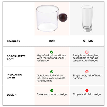 • Stylish & High-Quality: Crafted from premium borosilicate glass, the mugs provide superior insulation, keeping drinks hot or cold longer.