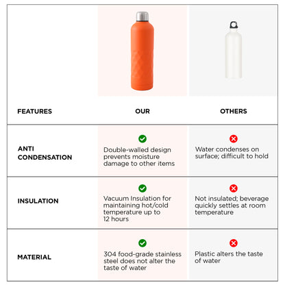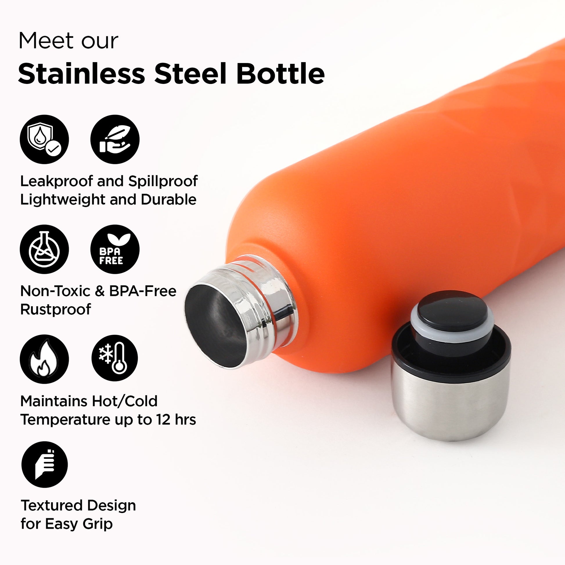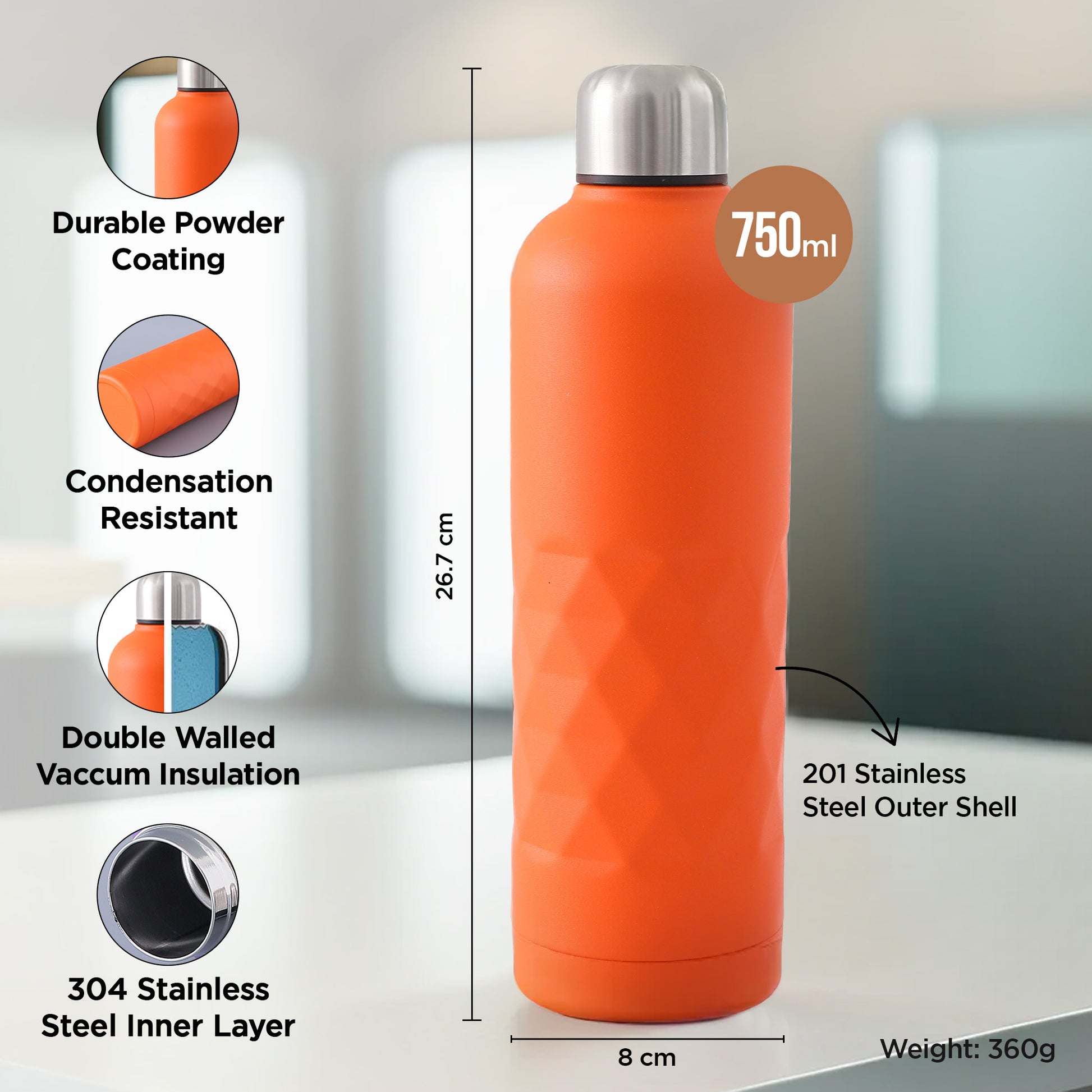 750ml Insulated Thermosteel Bottle - Leakproof, Easy Carry | Hot & Cold Water Flask | Orange
