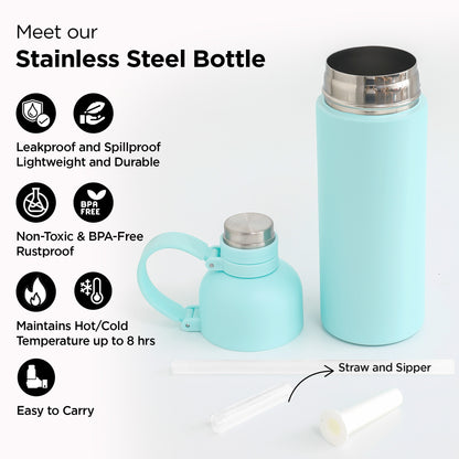 UMAI Double-Walled Vacuum Insulated Stainless Steel Water Bottle | Sipper Bottle for Kids/Adults | Hot & Cold Water Bottle for Gym, Home, Office, Travel | 500ml (Light Green)