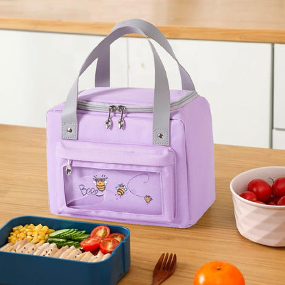 • GENEROUS CAPACITY, COMPACT SIZE: Measuring 23.5*14*18.5cm, our spacious interior comfortably fits lunch boxes and bottles. The external transparent pocket is perfect for organizing napkins and cutlery.