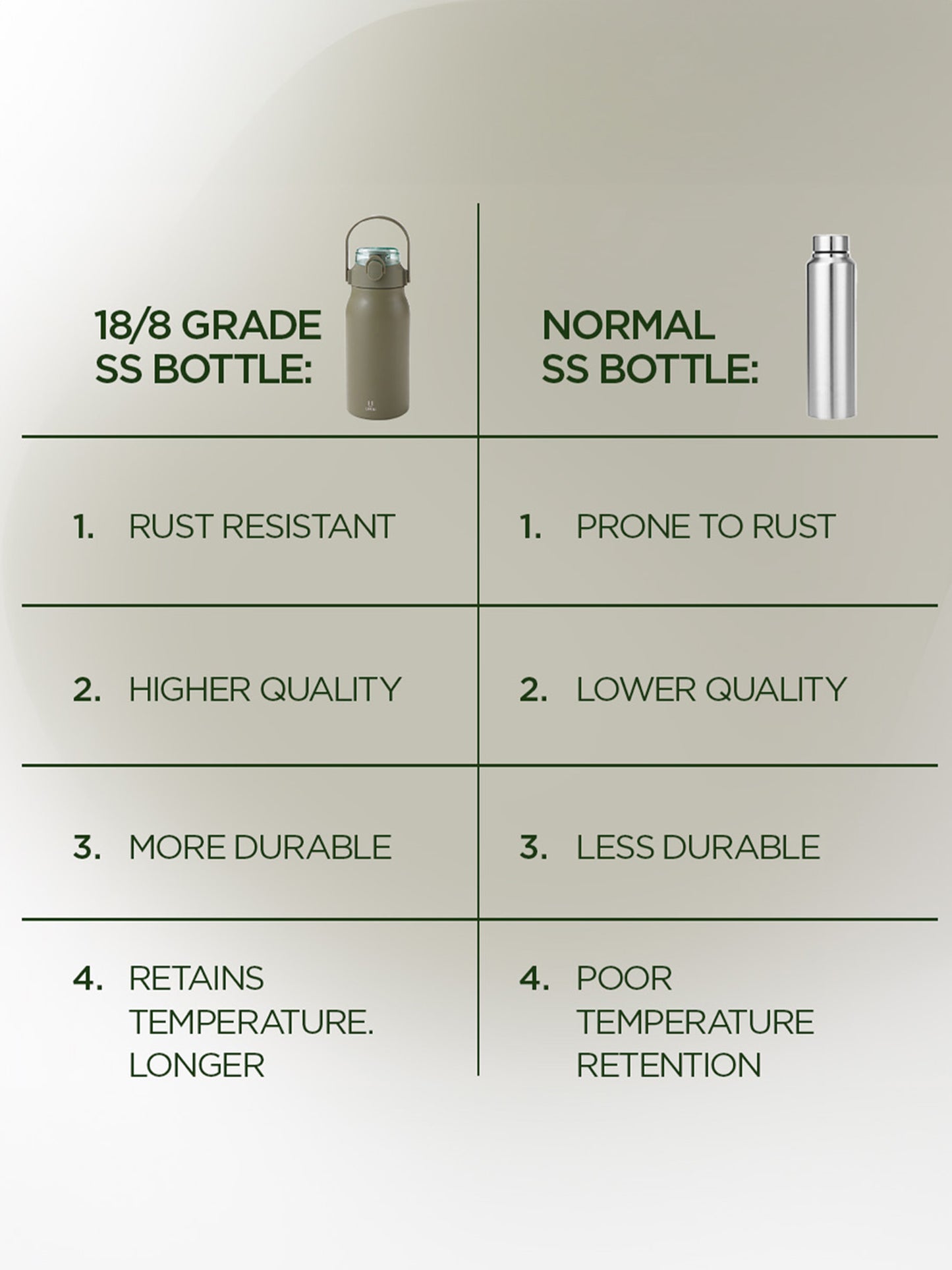 - Premium Quality Material: Made from 304 Food-Grade Stainless Steel, this bottle ensures safety for you and your family. It's eco-friendly, BPA-free, and rust-proof, providing long-lasting durability.