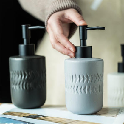 Liquid Soap Dispenser | Stoneware | Bathroom Sanitizer, Lotion, Shampoo Dispenser | Ceramic Handwash Bottle for Kitchen | Soap Dispenser for Wash Basin | Bathroom Accessories | 250ml (Black)