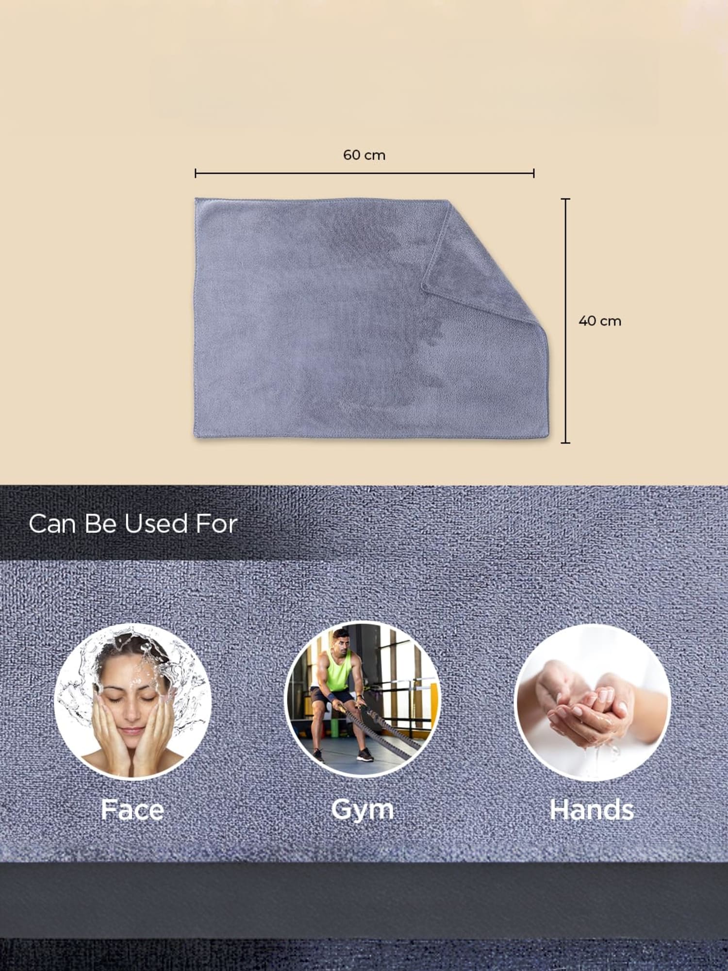 UMAI Microber Face Towel (40cmX60cm) 400 GSM - Super Absorbent, Quick-Dry, Gentle on Skin, Super-Soft for Everyday Use | Microfiber Face Towel for Women & Men (Pack of 3, Blue-Grey-Purple)