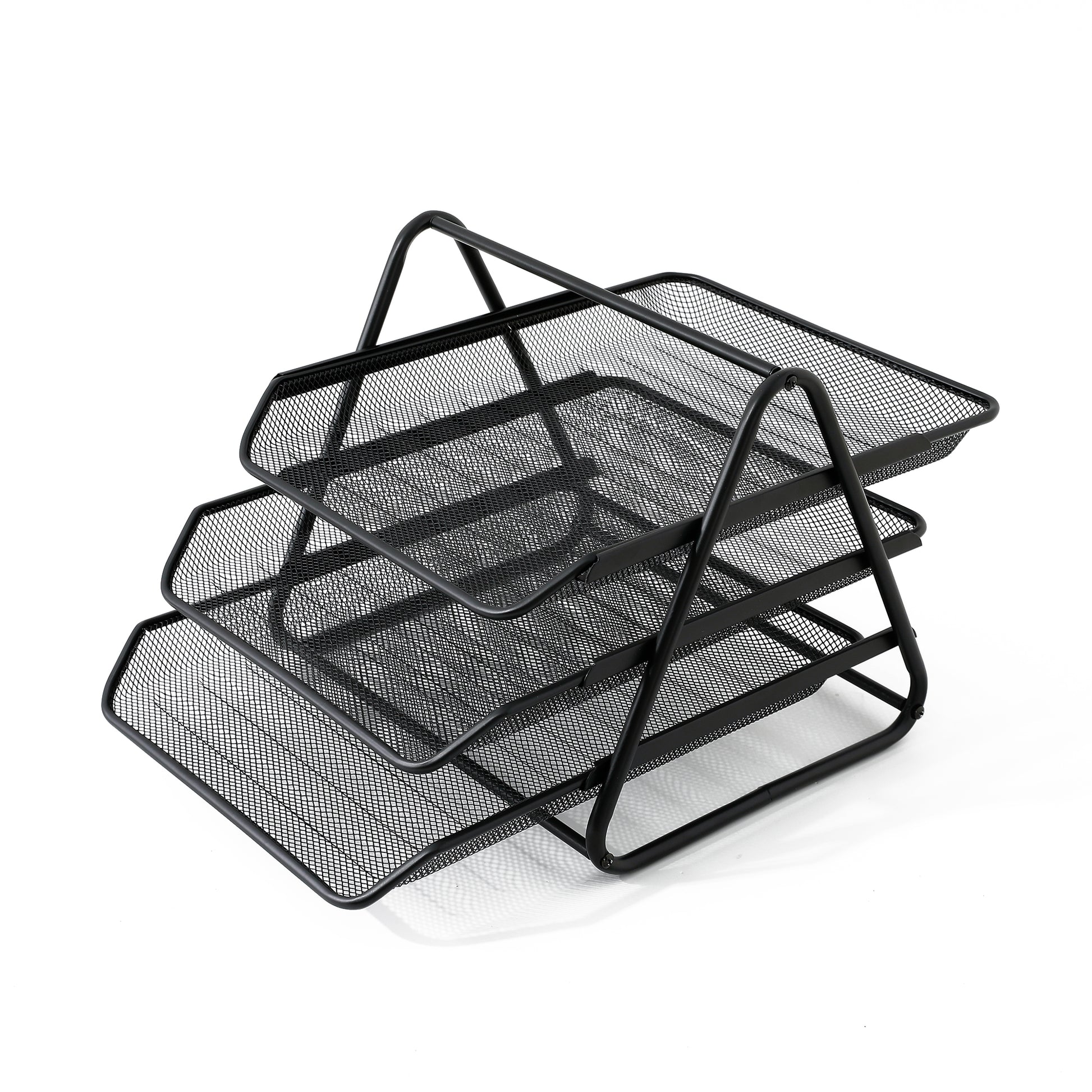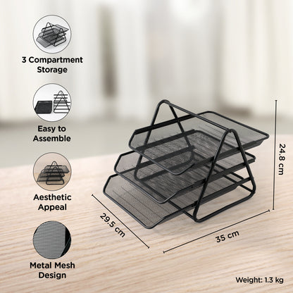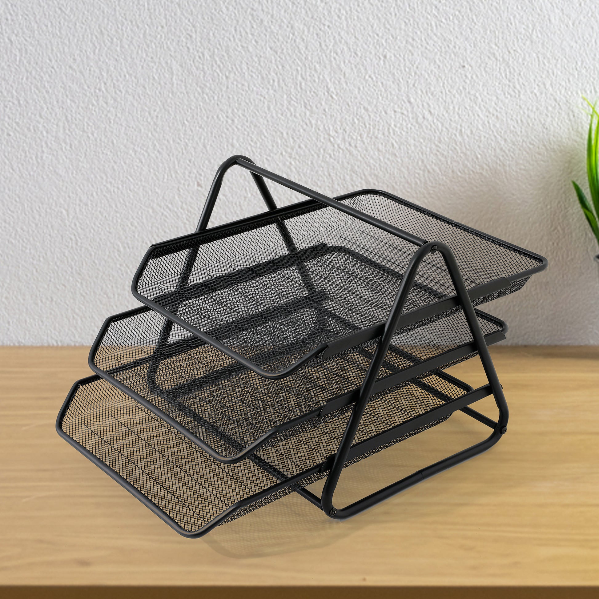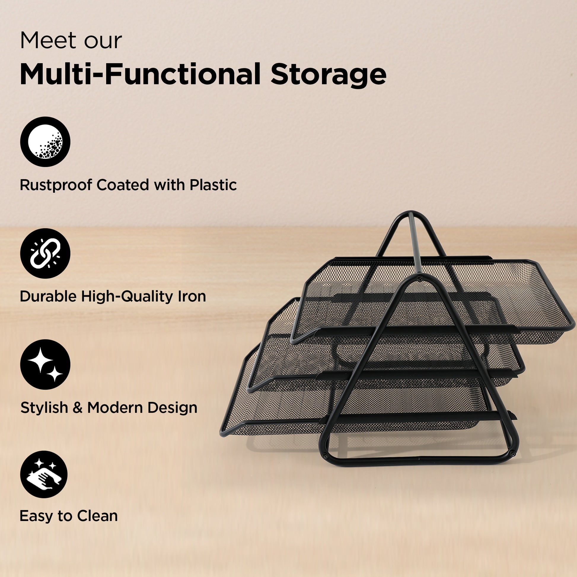 Office Files Storage Organizer - Durable Metal Mesh | 3 Layers | 29x35x29cm | Black