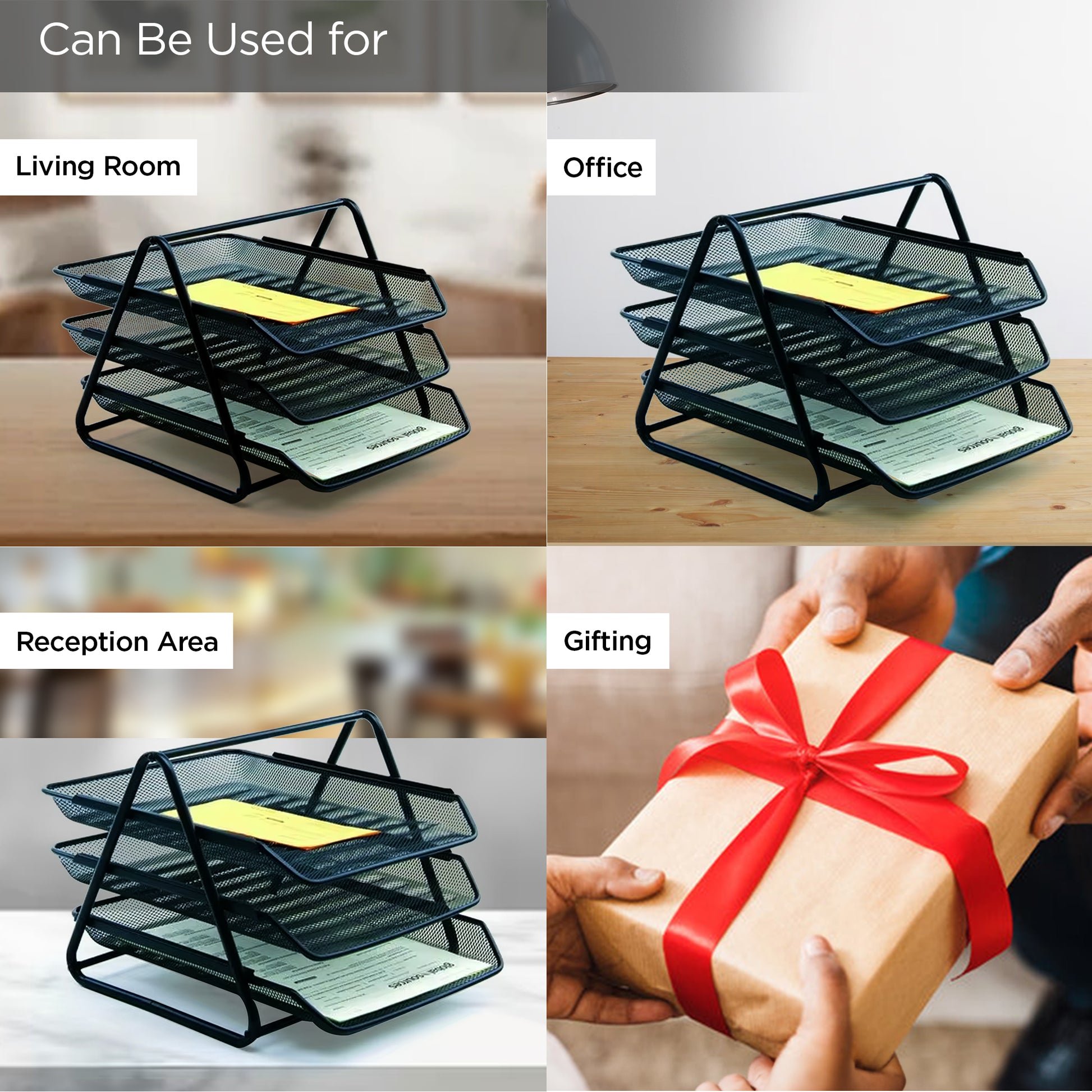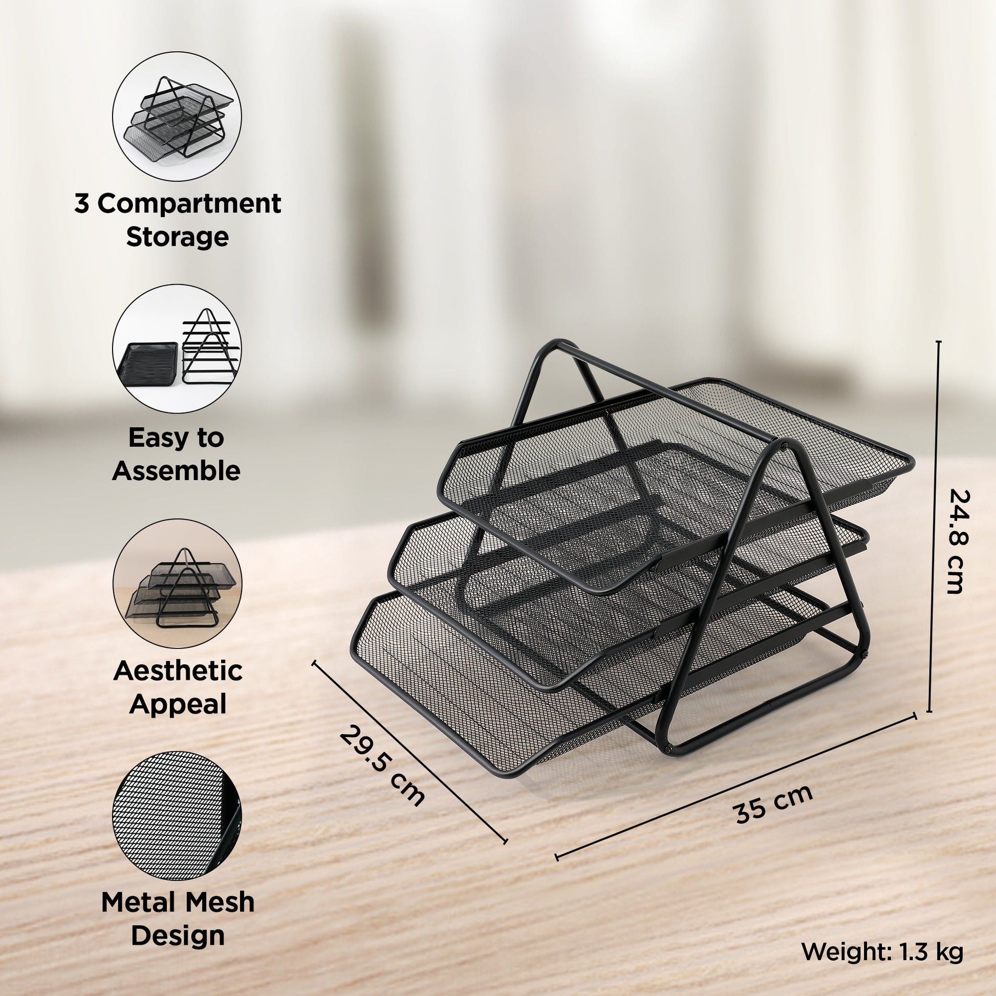 UMAI Office Files Storage Organizer - Durable Metal Mesh | 3 Layers | 29x35x29cm | Black