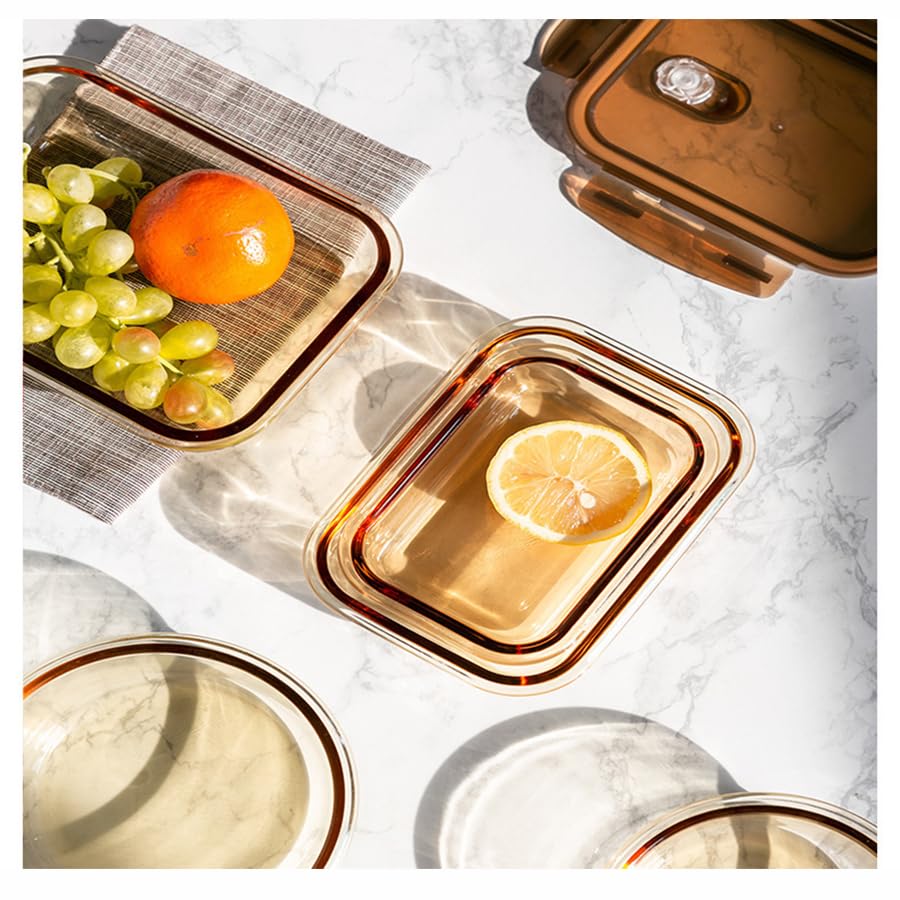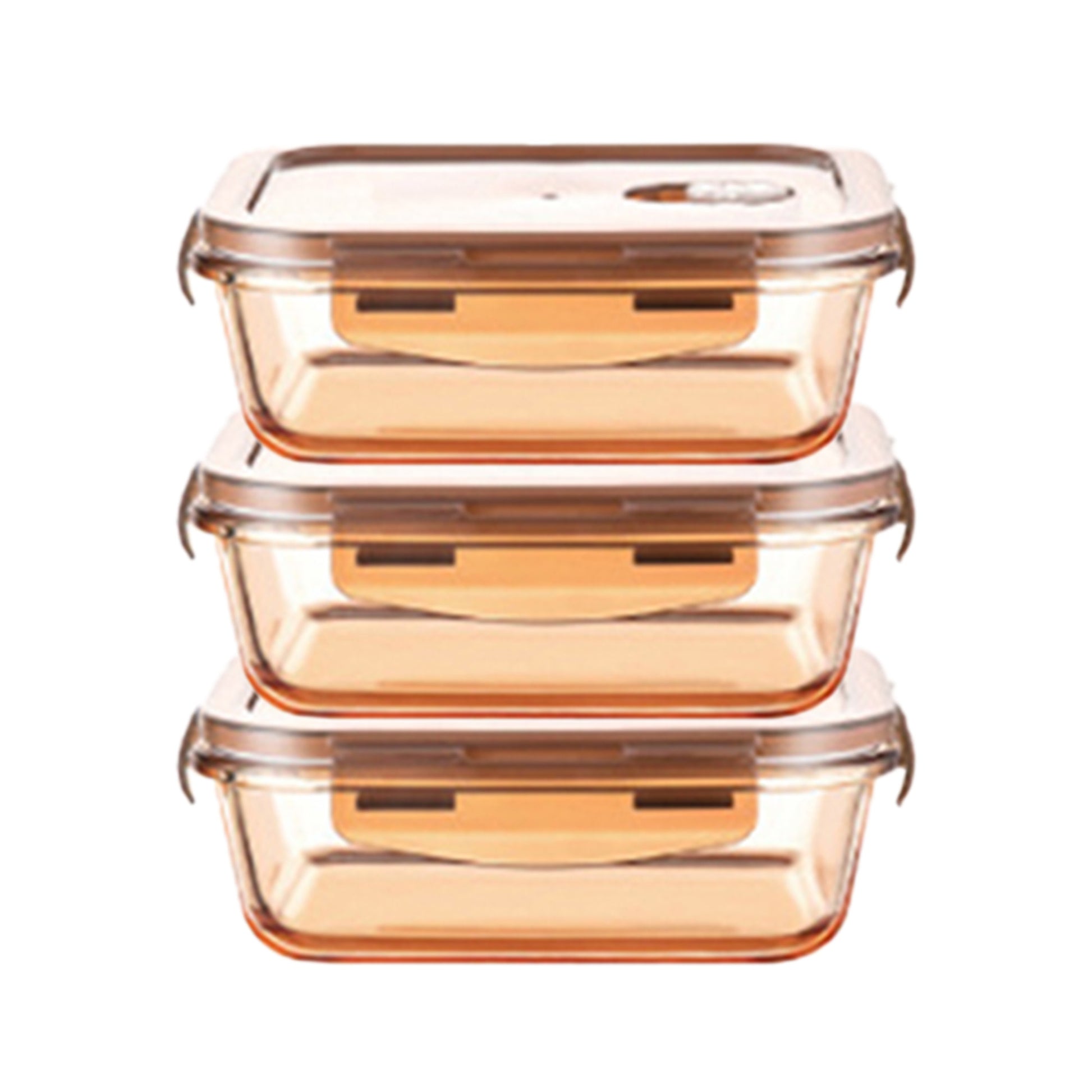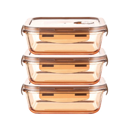 UMAI Pack of 3 Borosilicate Glass Kitchen Containers Set with Airvent Pp Lid | Airtight Rectangular Fridge Storage Boxes for Grains, Pulses, Spices, Snacks | 600 ml Each | Amber