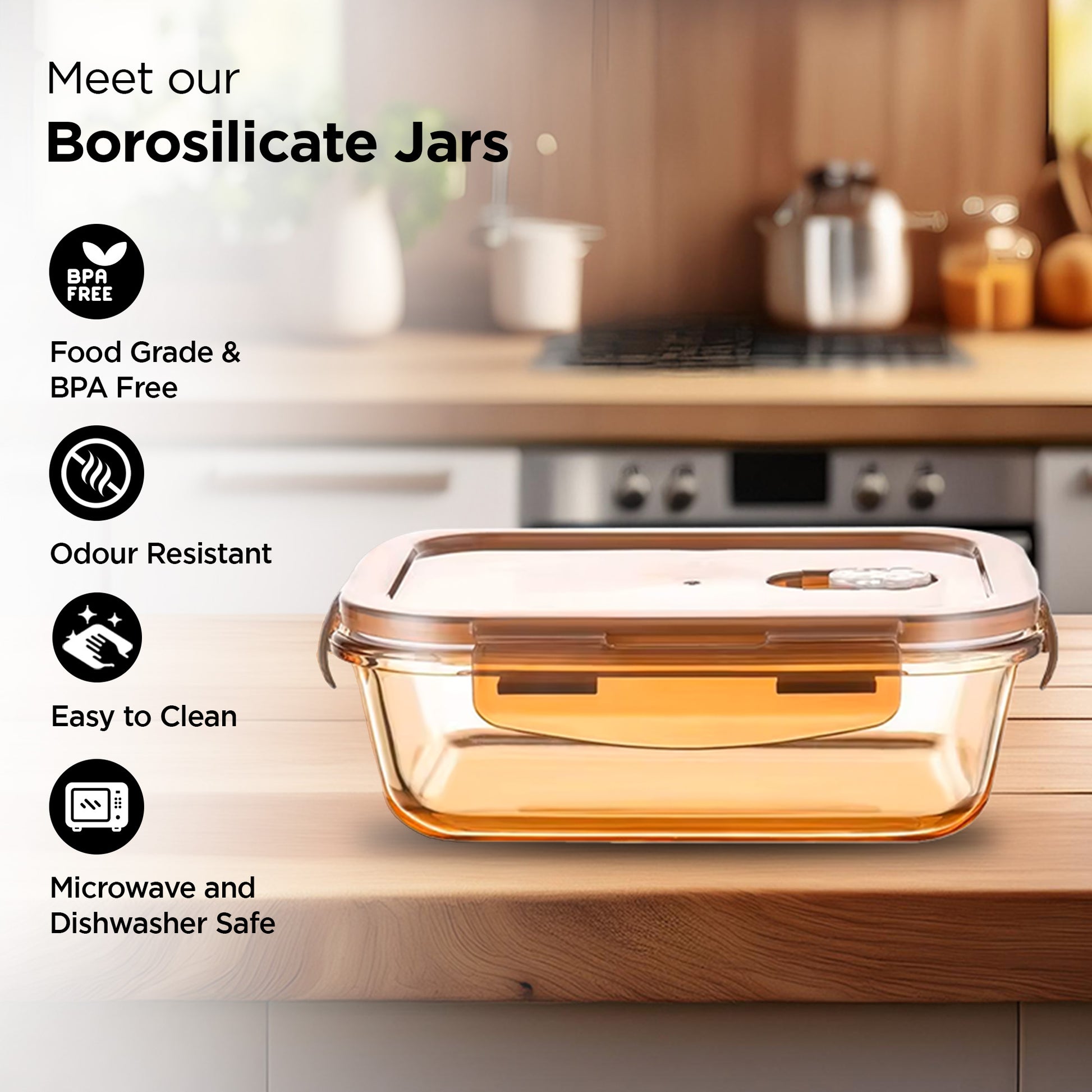 Crafted from high-quality Borosilicate Glass, these containers offer durability and sustainability. With a capacity of 600ml each, they are perfect for a wide variety of food items, adding a touch of sophistication to your kitchen.