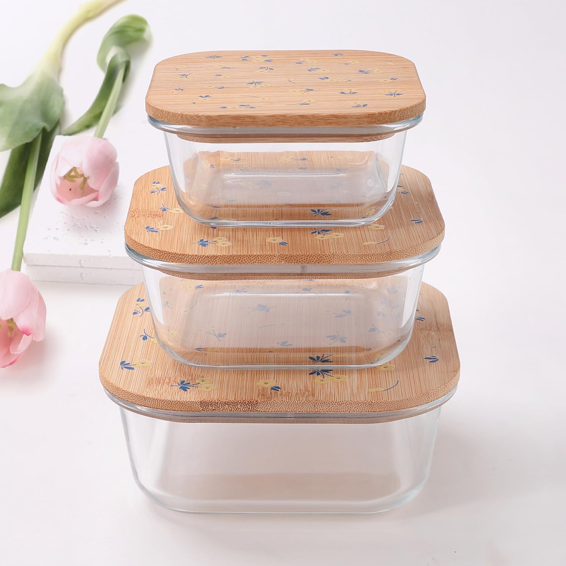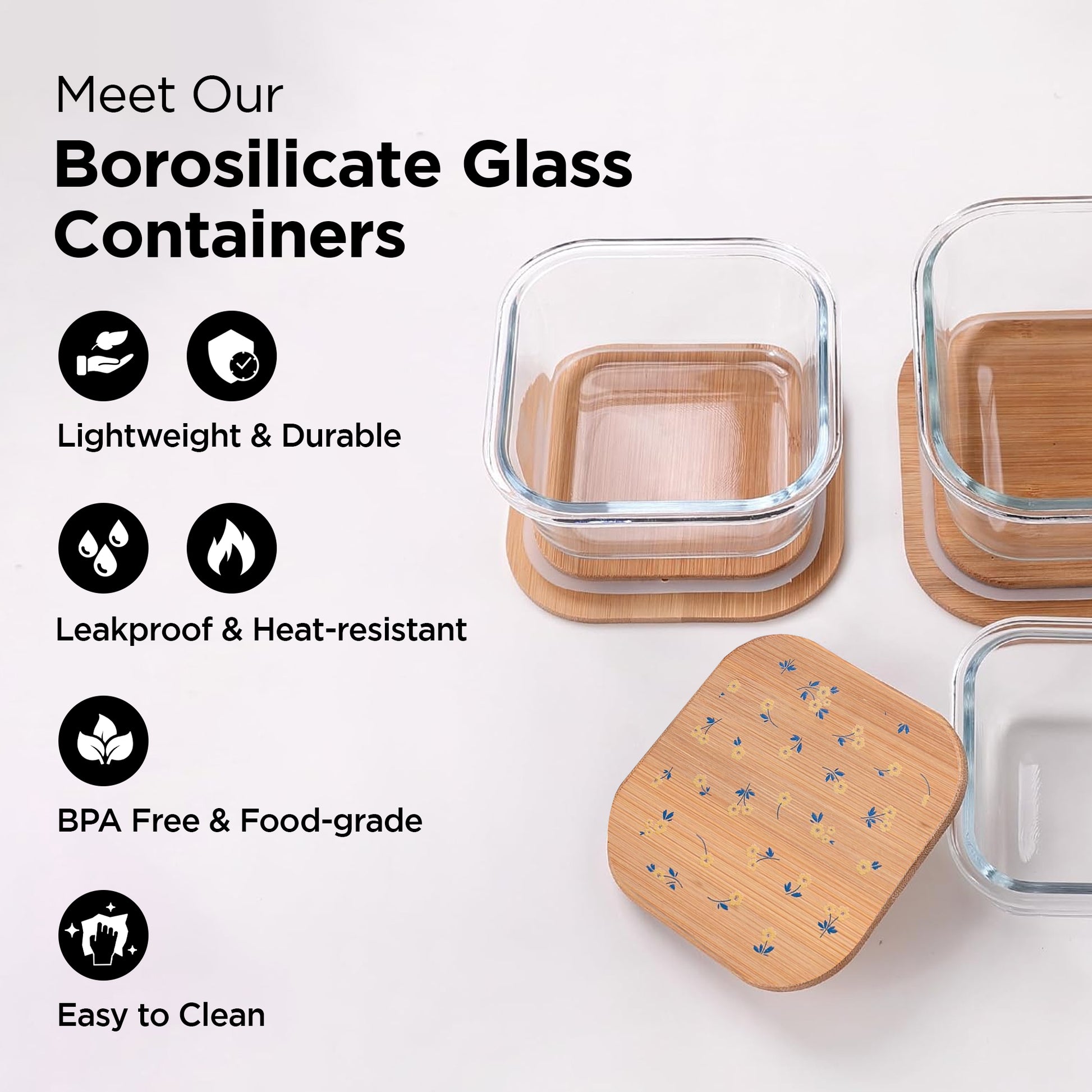 • Sustainable & Versatile: Made from premium borosilicate glass, these containers are designed for durability and style. The elegant print adds a touch of sophistication to your kitchen.