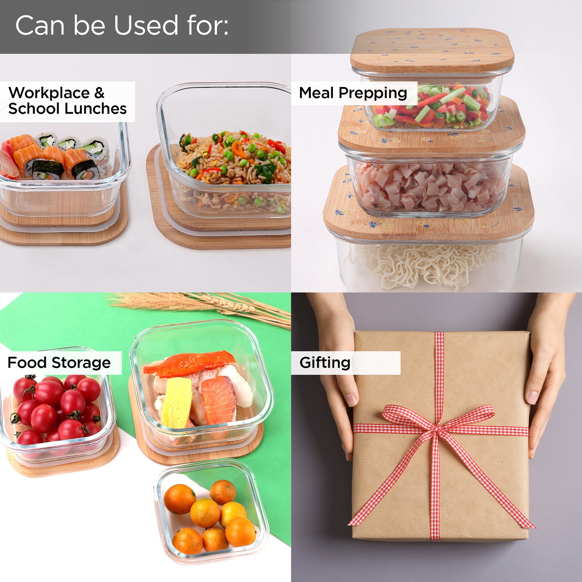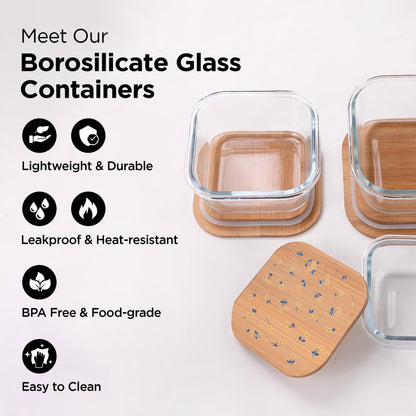 • Leakproof & Easy to Clean: The airtight bamboo lids equipped with food-grade silicone rings ensure your food stays fresh while preventing leaks. The crystal-clear glass allows for easy visibility of contents and is dishwasher, freezer, and microwave safe for hassle-free cleaning.