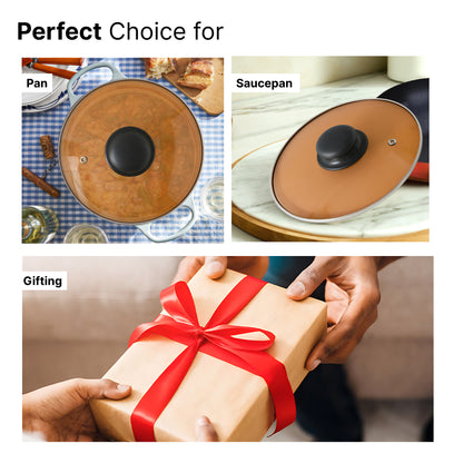 UMAI 18 cm: Amber Glass Pot Lid with Steel Rim | Universal Cooking Lid