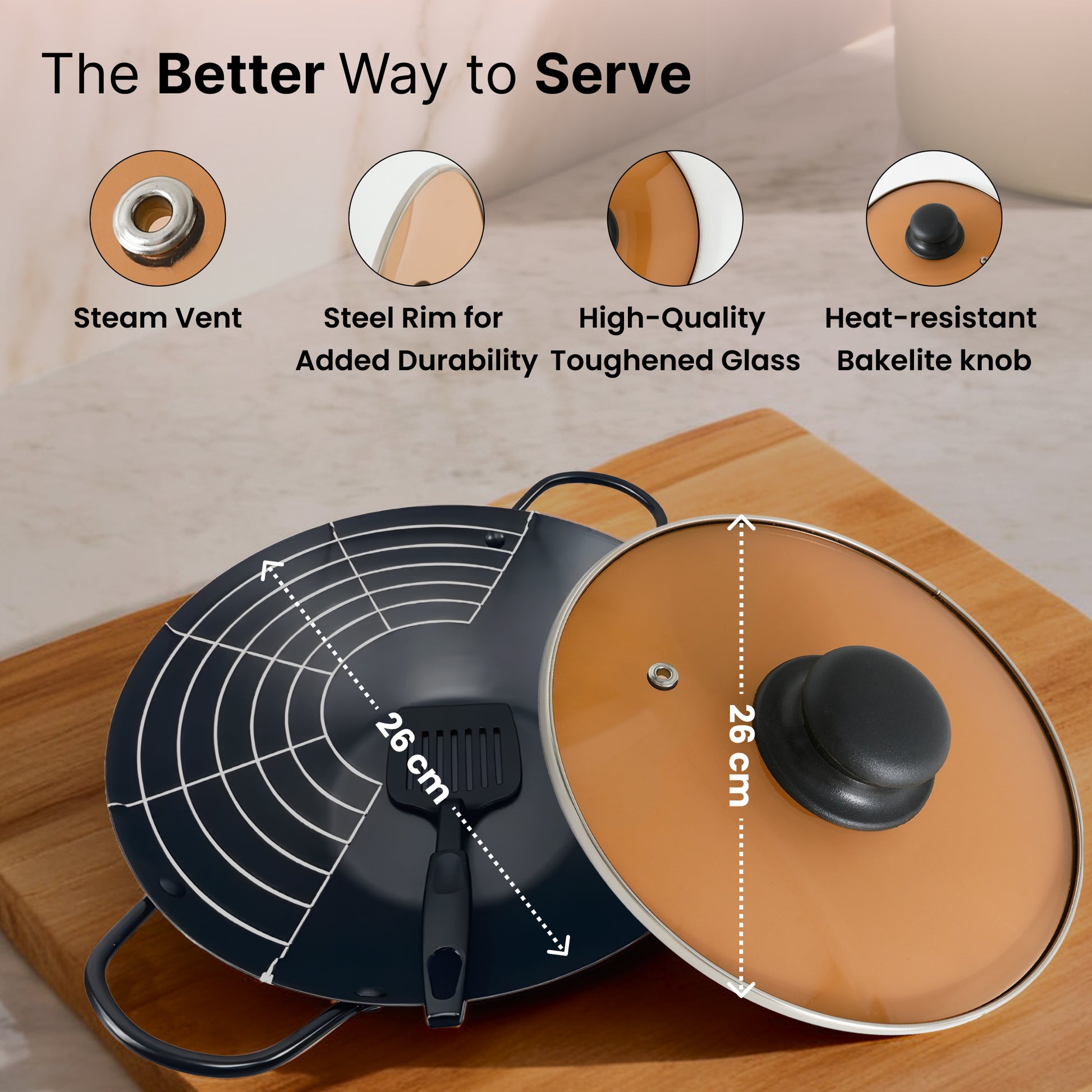 Introducing the 26 cm Amber Glass Lid by The Better Home, a kitchen essential designed for efficiency and convenience. This versatile glass lid fits various utensils, including your favorite kadai or pan. Crafted from toughened glass with a durable stainless steel rim, it offers exceptional durability and longevity. The heat-resistant Bakelite knob ensures safe handling while cooking. Featuring a convenient steam vent, this lid helps to prevent pressure buildup, making it ideal for simmering and boiling. Whether you're a seasoned chef or just starting out, this lid is an indispensable addition to your kitchen. Its generous 26 cm size provides ample coverage, while its sturdy construction ensures long-lasting performance. The UMAI glass lid is dishwasher safe and easy to clean, making it perfect for busy kitchens. Invest in the UMAI 26 cm Amber Glass Lid and elevate your cooking experience today.