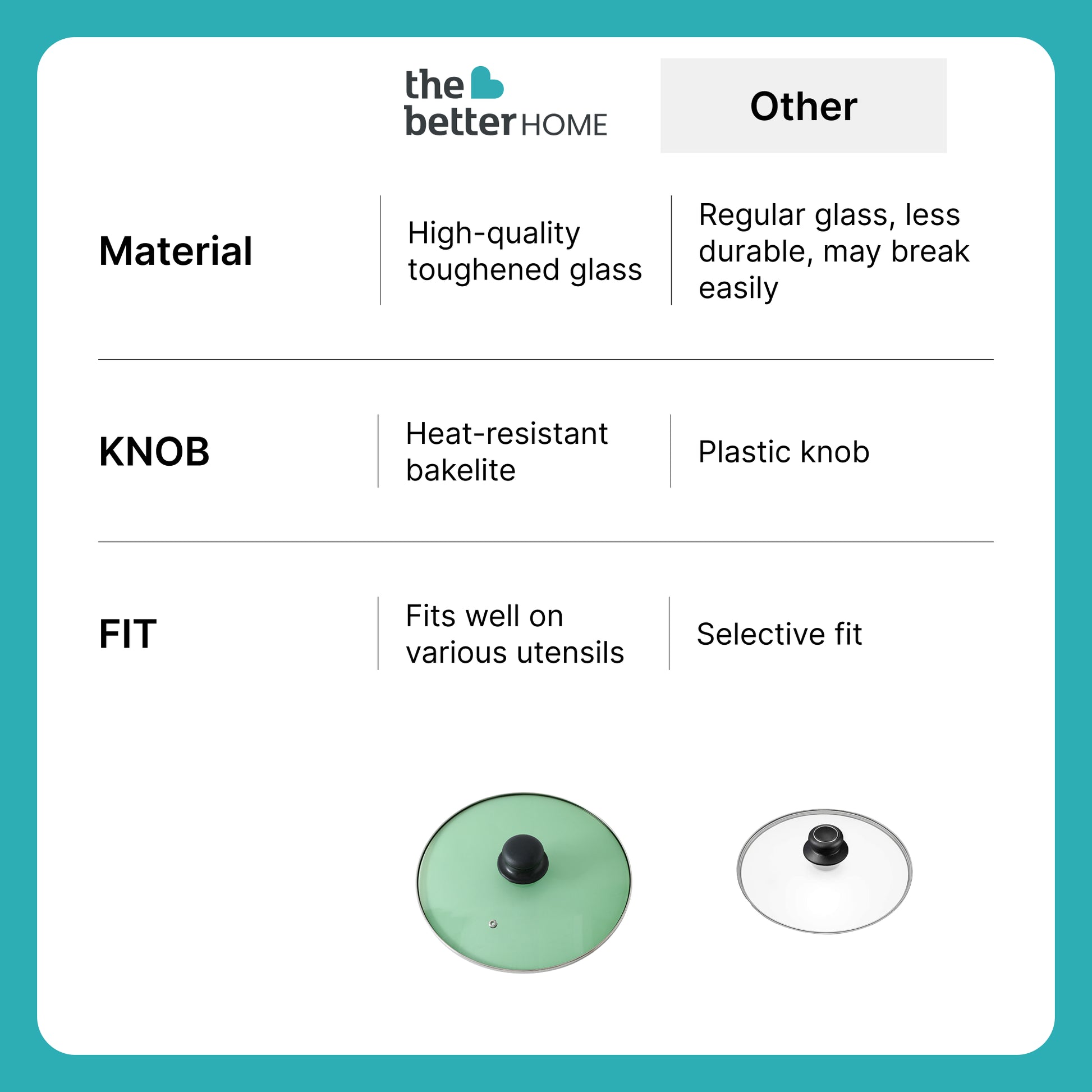 UMAI Pot Lids (22 cm) | Glass Lid For Utensils With Steel Rim | Universal Cooking Lid | Lids For Utensils | Lid For Kadai & Pans | Cooking Pan Lid (Green)
