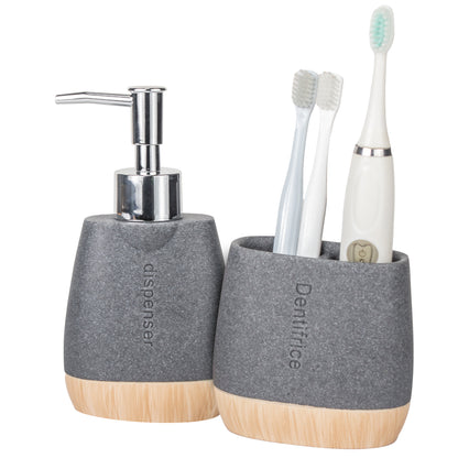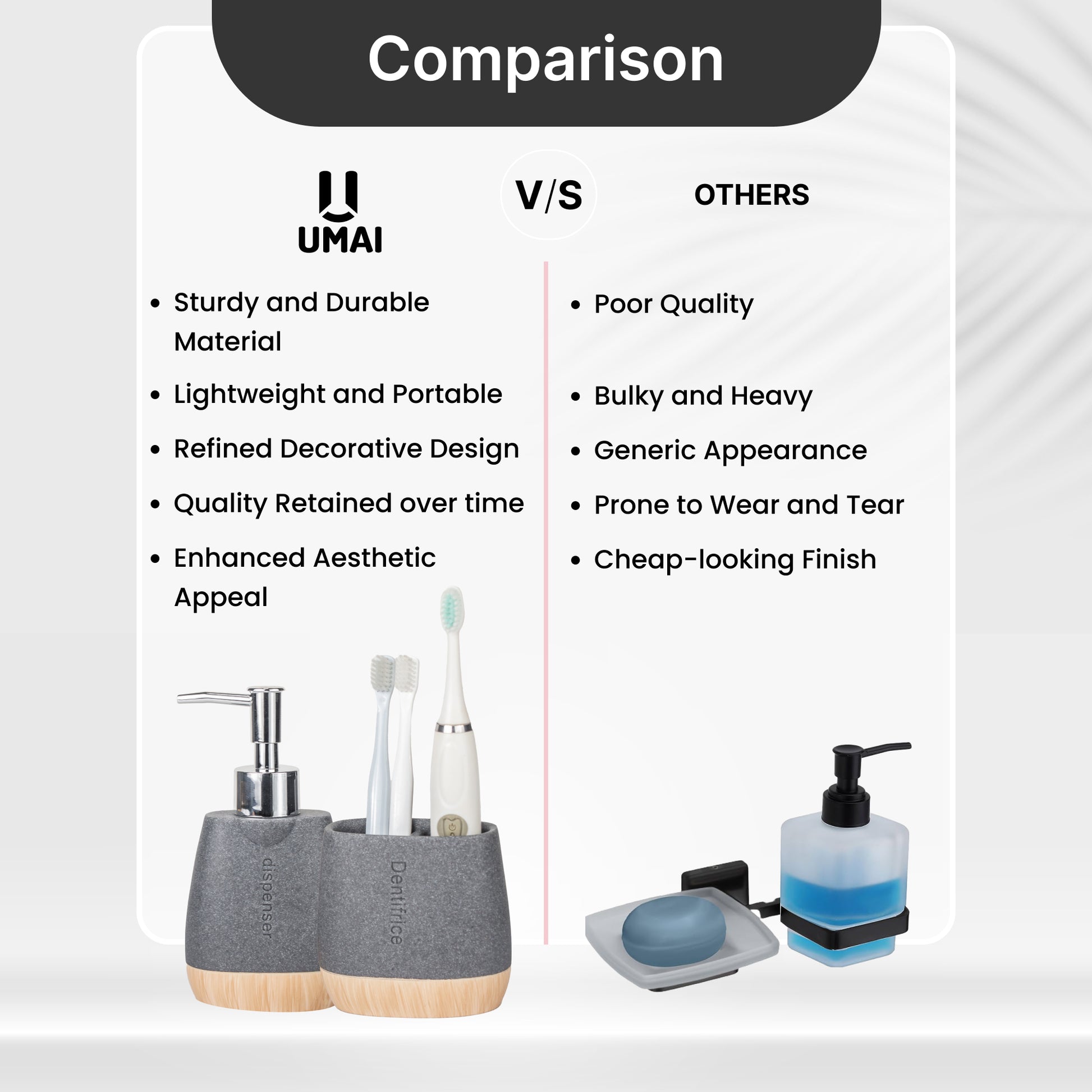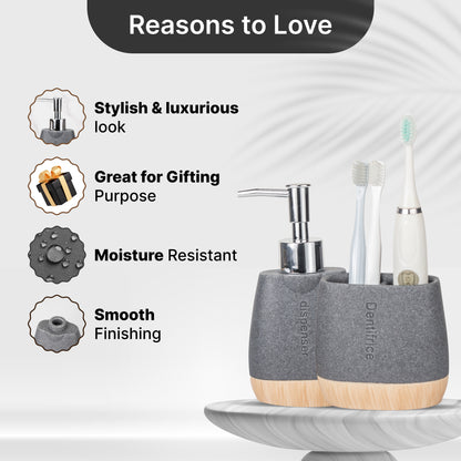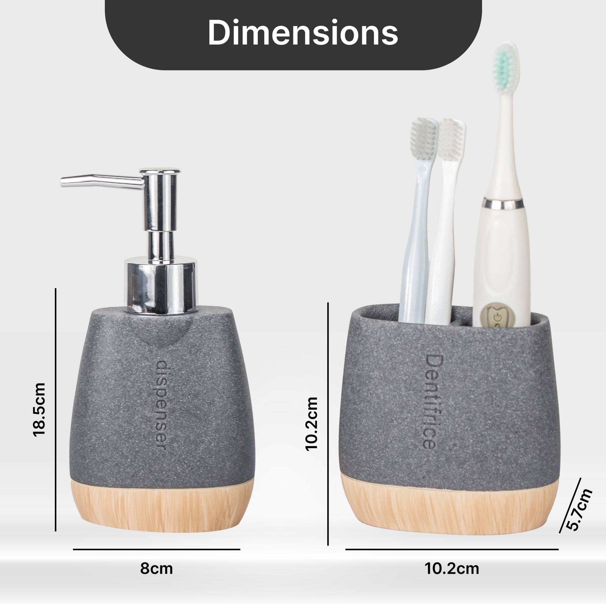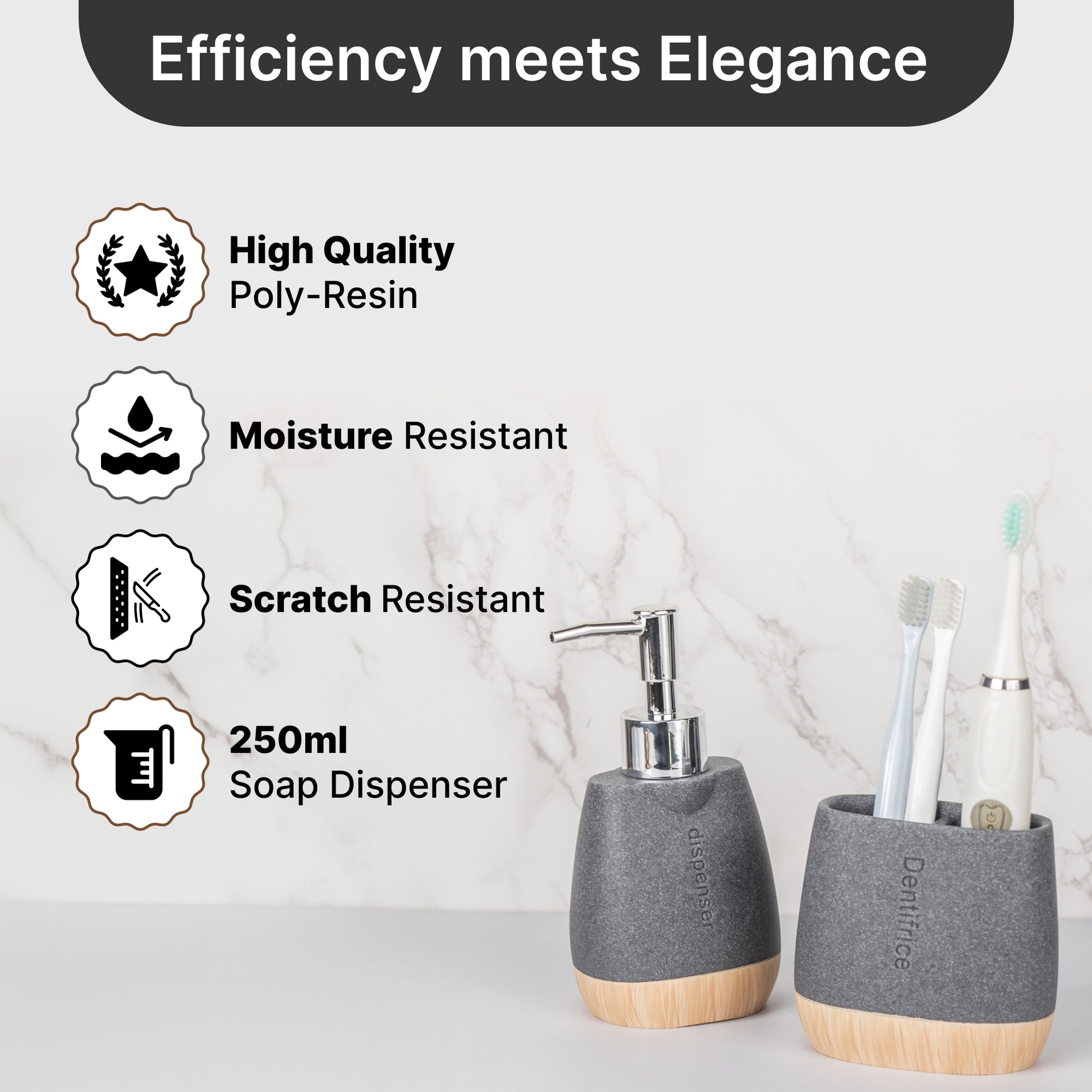 UMAI Premium 2-Piece Bathroom Accessories Set | Tooth Brush Holder | Liquid Soap Dispenser (250ml) | Moisture Resistant | Scratch Proof | Grey-Natural