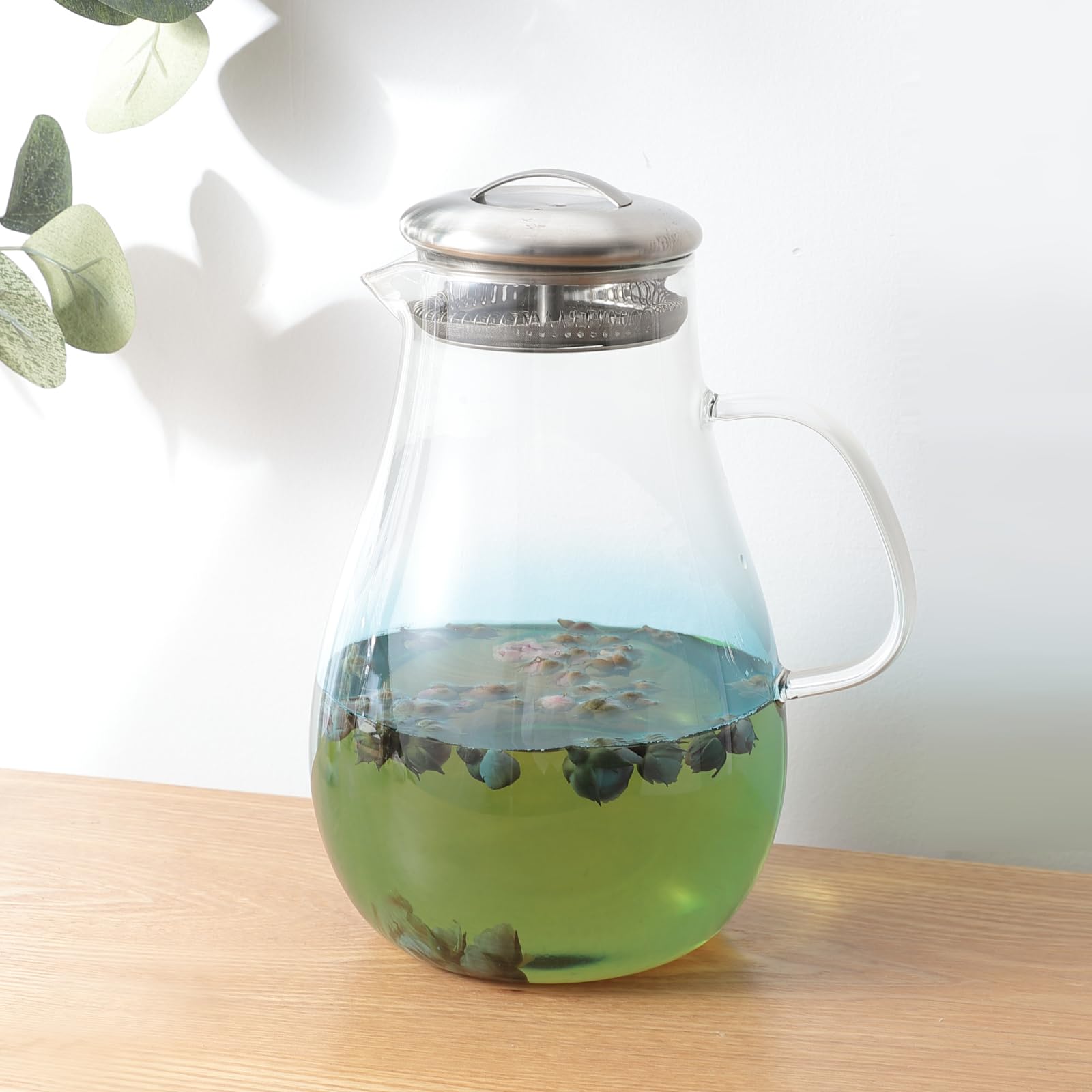 UMAI Borosilicate Glass Water Jug with Airtight Lid | Glass Jar for Water with Handle | Glass Jug for Water | Water Jugs for Dining Table | Detox Water Jar | Water Jar (1.5L (no Handle))