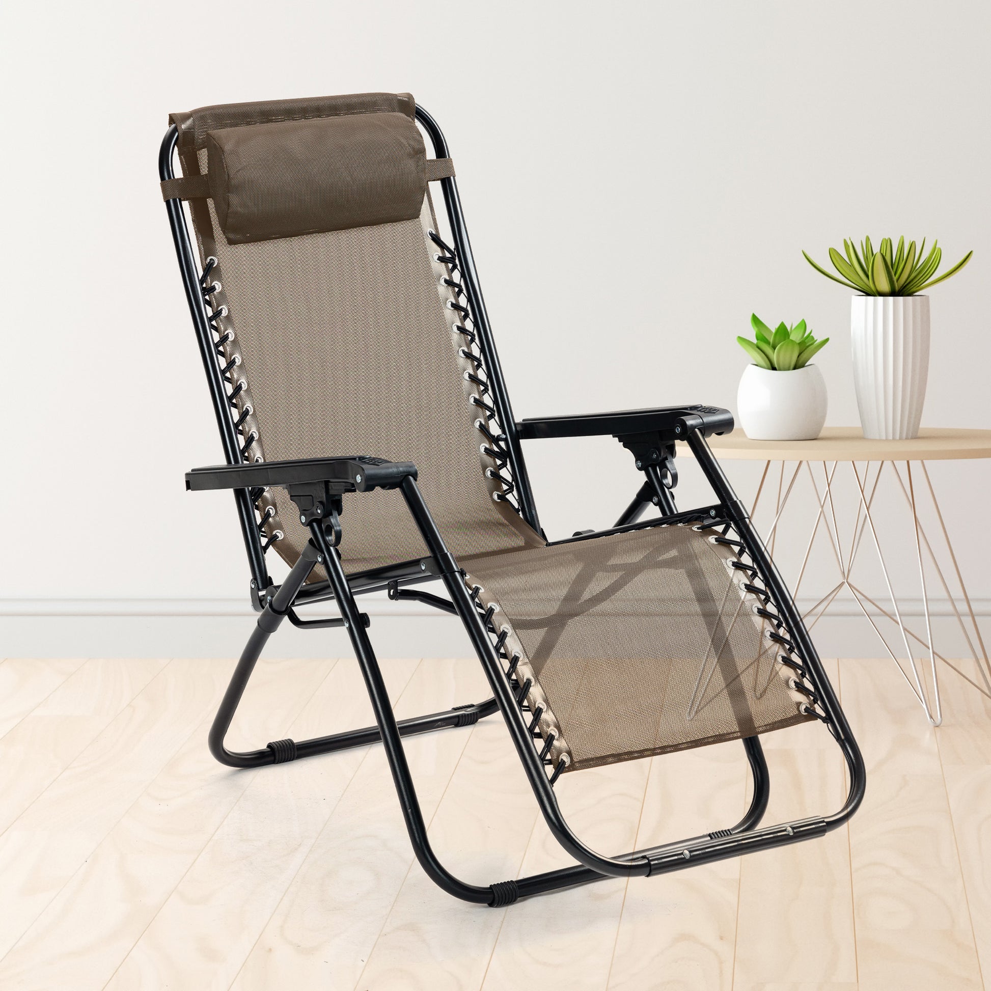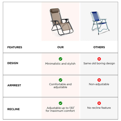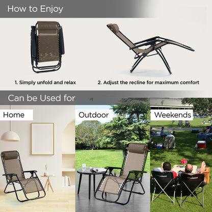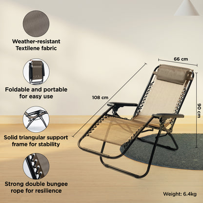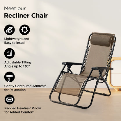 Recliner Chair - Adjustable Pillow, Portable, & Folding | Comfortable Lounge Chair for Home | 90 x 200 cm | Taupe