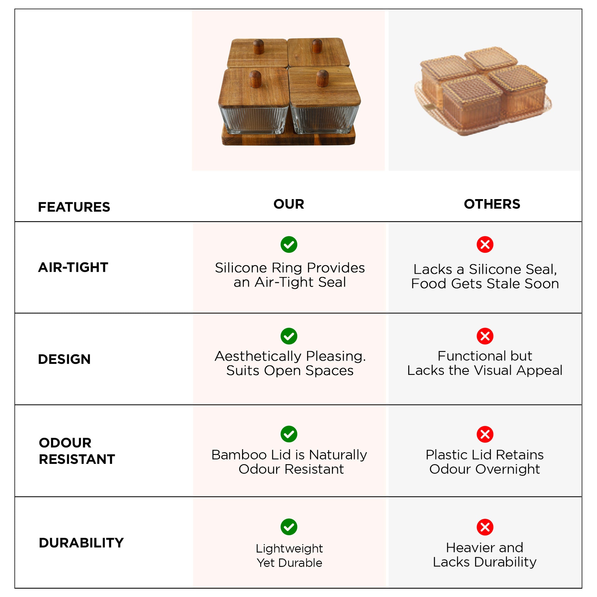 • Freshness guaranteed: Airtight acacia wood lids enhance flavor freshness and style.