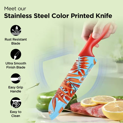 Sharp Knife for Kitchen (7.5 Inch) Chef Knife | Chaku Knife | Printed Knife| Nife | Chopping Knife | Steel Kitchen Knife with Cover | Chopper Knife for Kitchen (Multi)