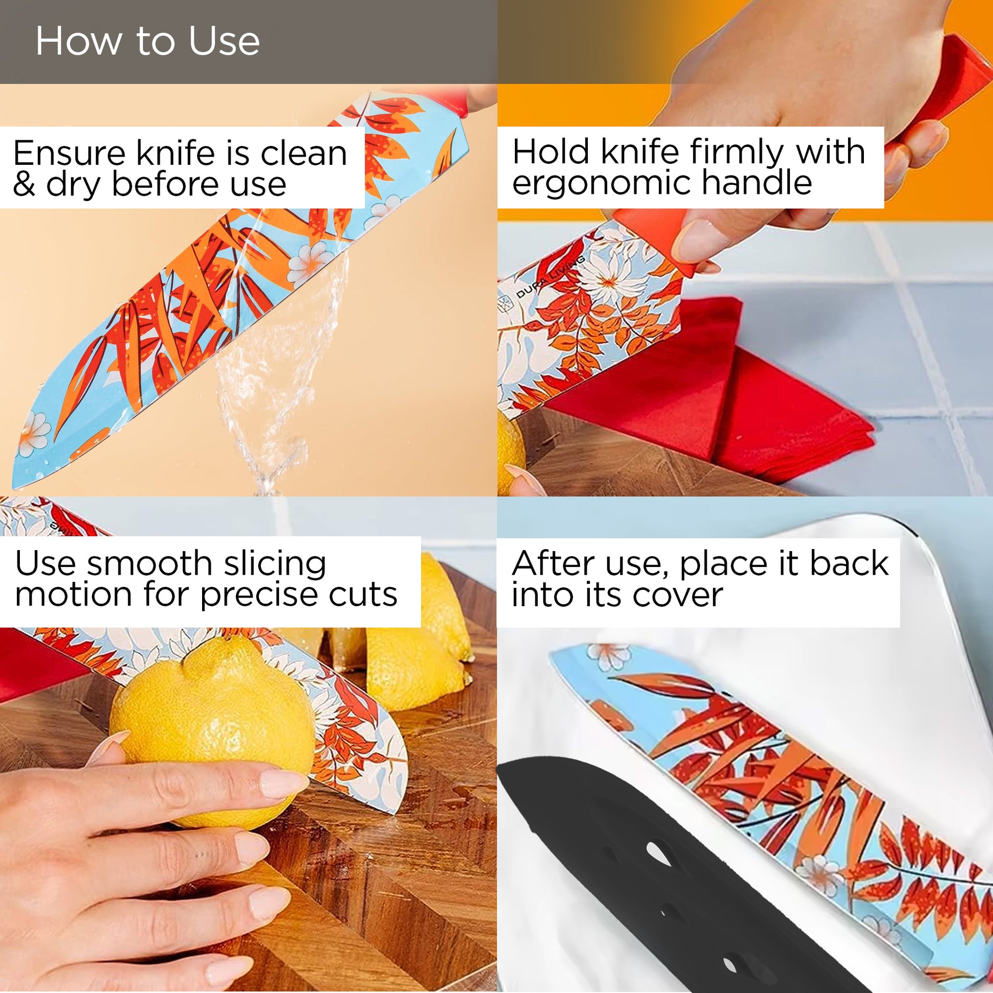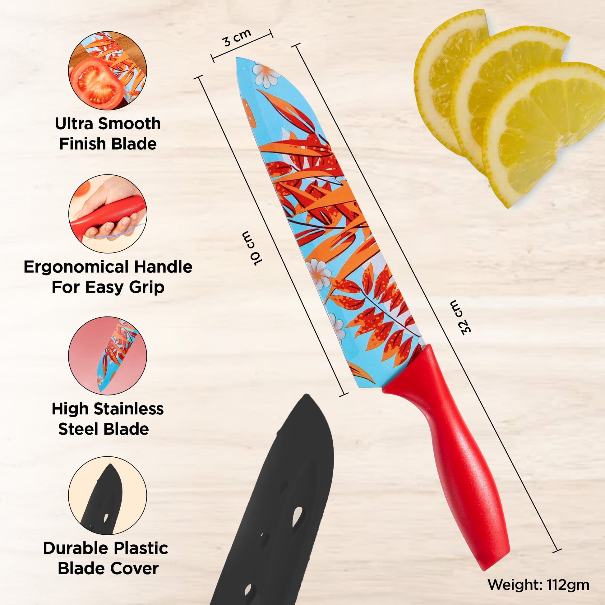 UMAI Sharp Knife for Kitchen (7.5 Inch) Chef Knife | Chaku Knife | Printed Knife| Nife | Chopping Knife | Steel Kitchen Knife with Cover | Chopper Knife for Kitchen (Multi)