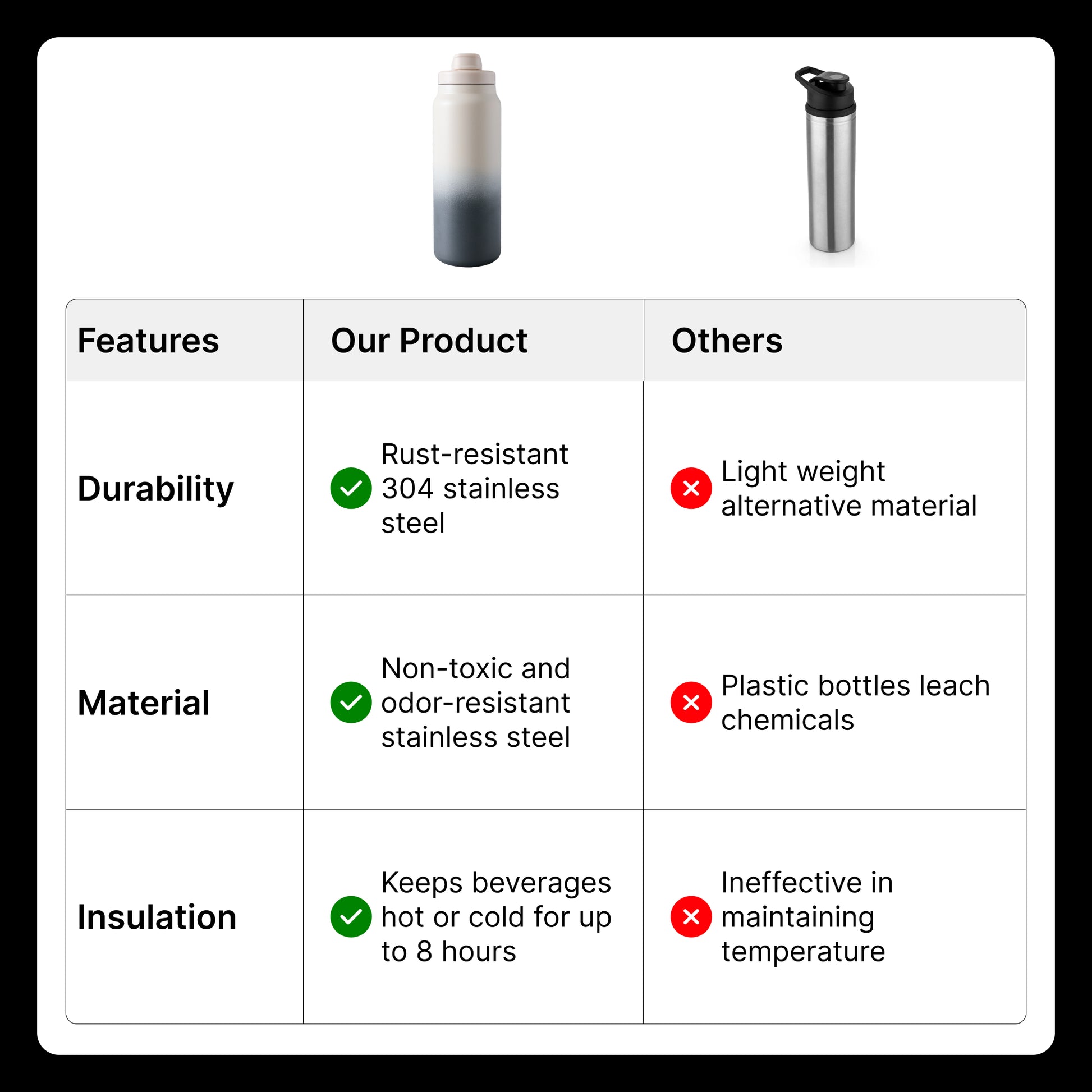 • BPA Free: Made from high-quality, BPA-free stainless steel, ensuring that your drinks stay pure and free from harmful chemicals.
