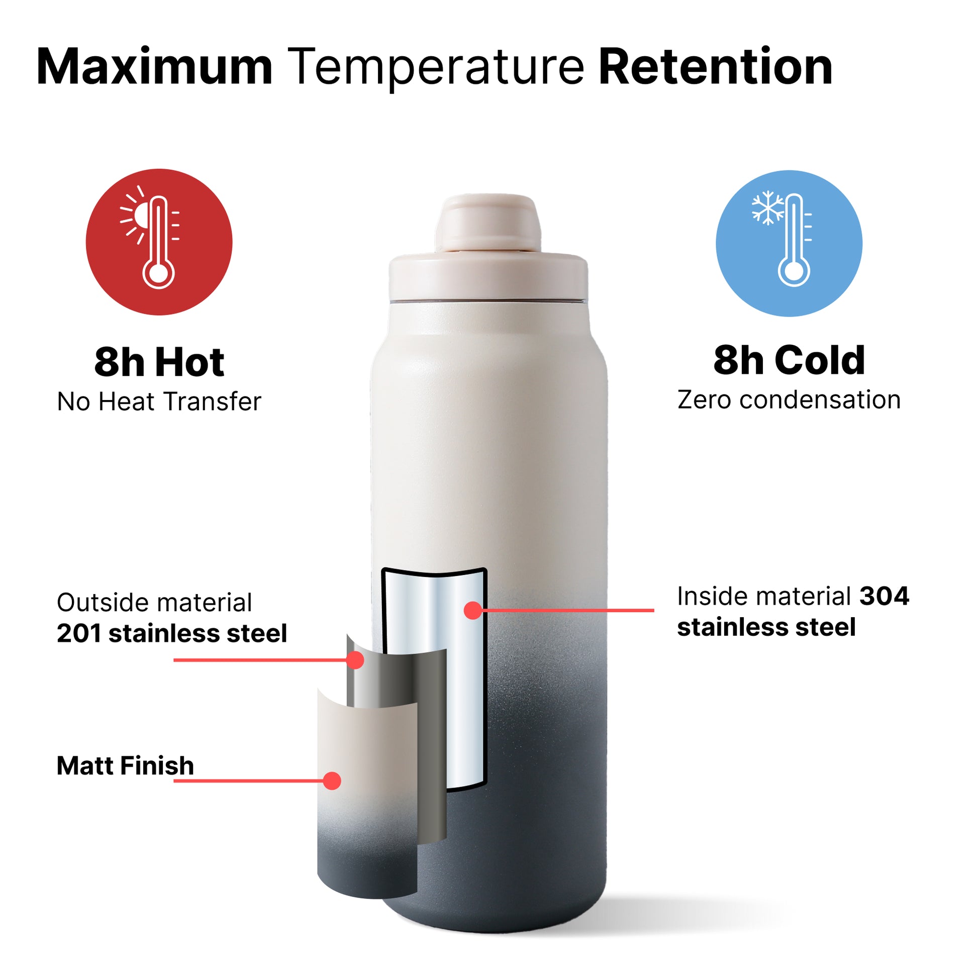 • Exceptional Temperature Retention: Keep your beverages cold for up to 12 hours or warm for up to 6 hours. Perfect for both hot coffee on chilly mornings and refreshing cold water during summer workouts.