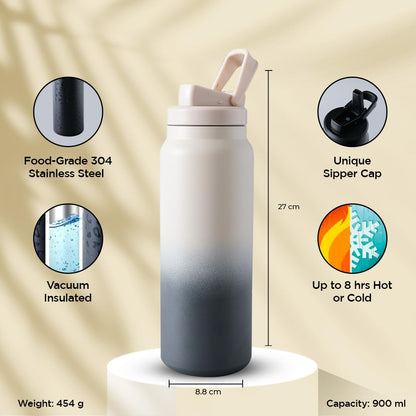 UMAI Stainless Steel Vacuum Insulated Water Bottle | 900 ml | Keeps Contents Cold/Warm Upto 6-12 Hours | BPA Free | Gym | Office | Home | Travel (Beige-Grey)