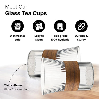 UMAI Set of 2: Lead-Free Glass Tea Cups with Bamboo Sleeve | 280ml | Transparent