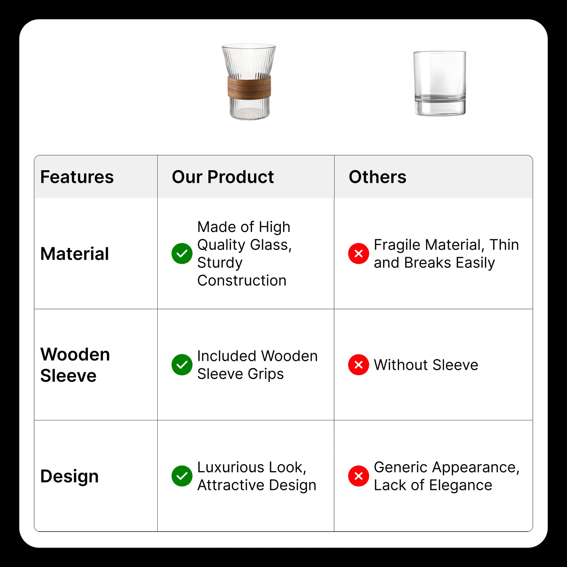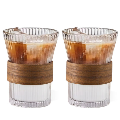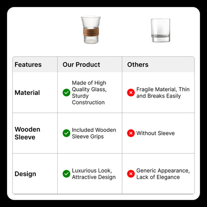 • Stylish & Practical: Enjoy 280ml of your favorite beverage in these elegant clear glass mugs with comfy wooden sleeves.