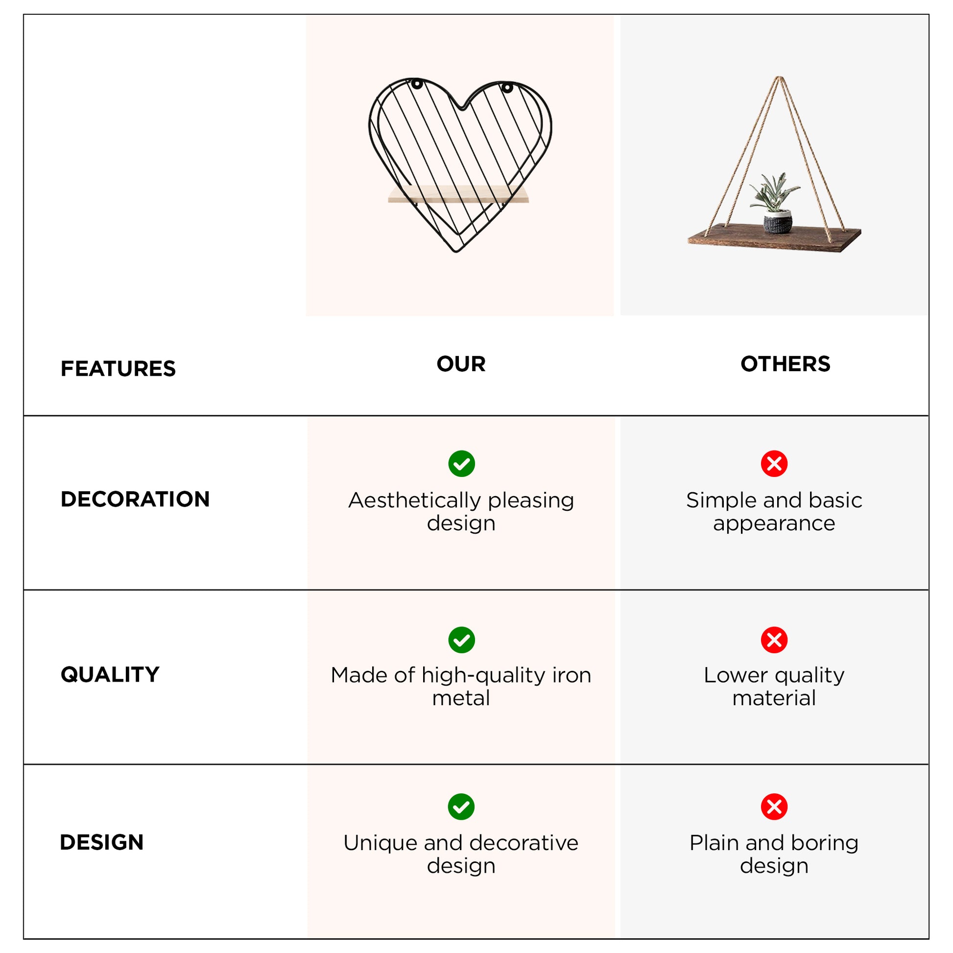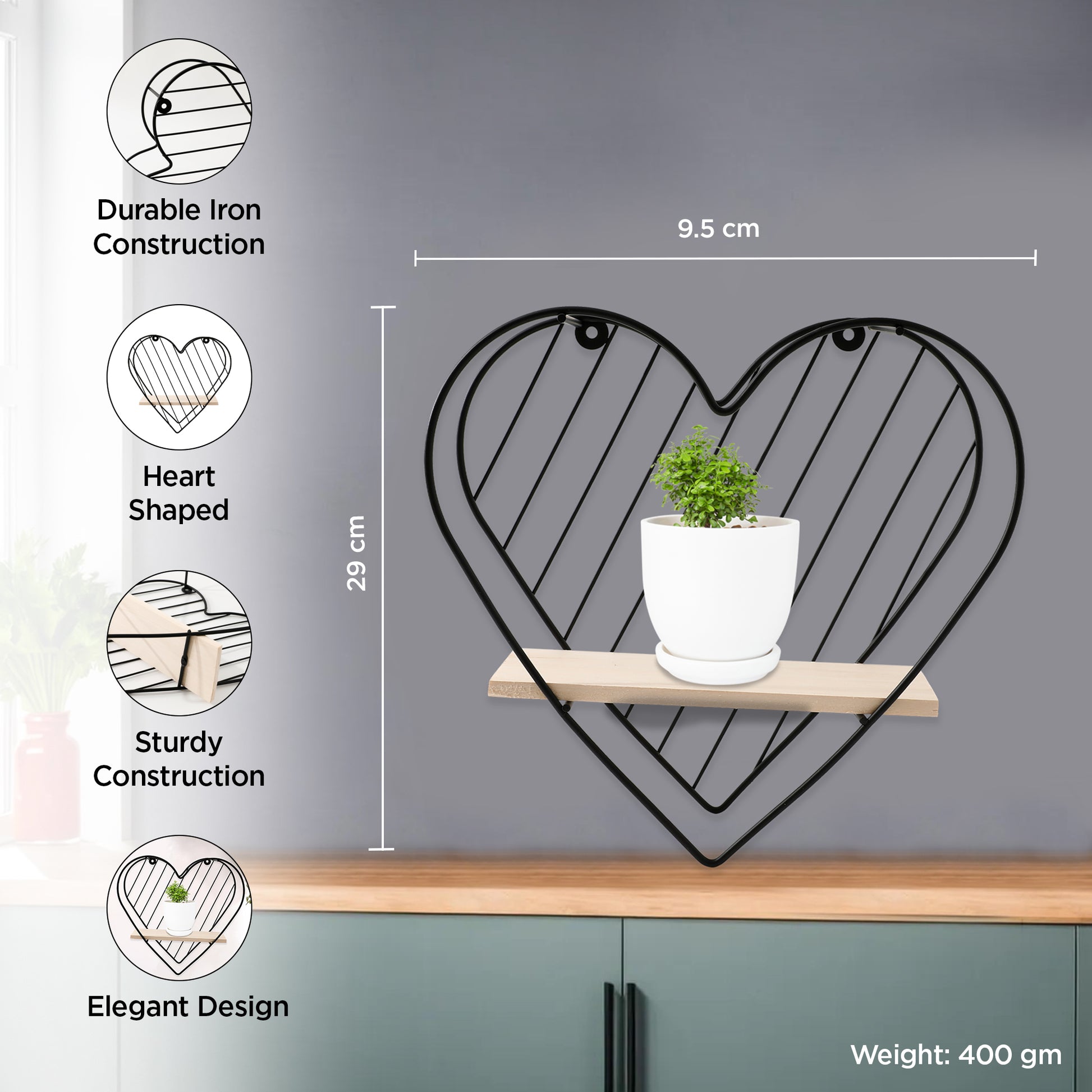 • STURDY DESIGN: Crafted from premium iron, this heart-shaped shelf guarantees durability and elegance in any space.