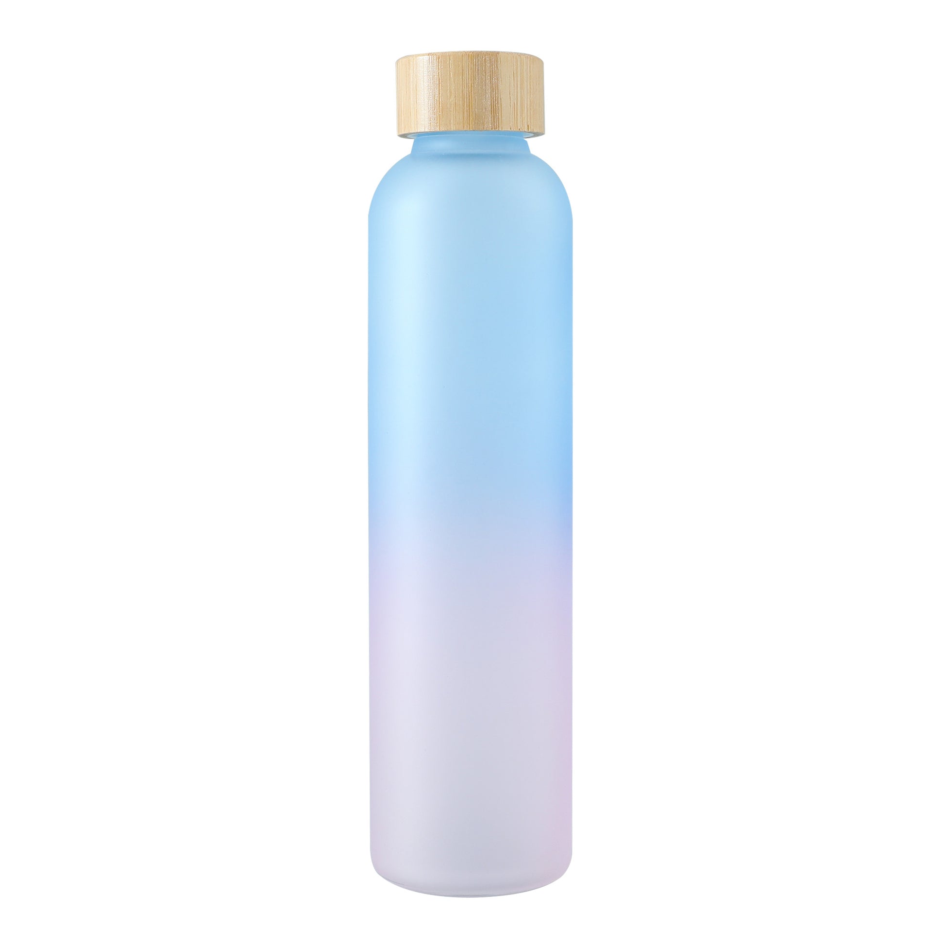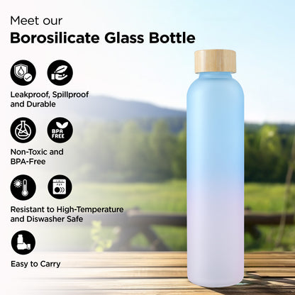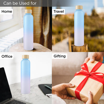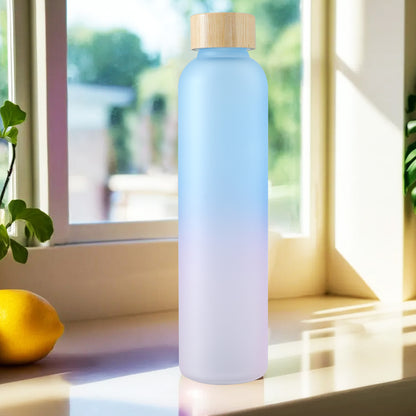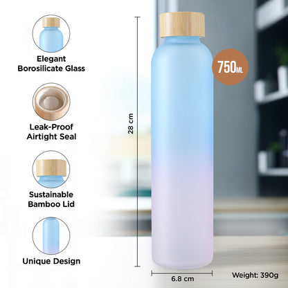 Water Bottle | Borosilicate Glass | Gradient Water Bottle With Bamboo Lid For Home Office & Travel Use | Dishwasher Safe Leak Proof | 750ml | Glass Water Bottle For Fridge | Blue-Pink