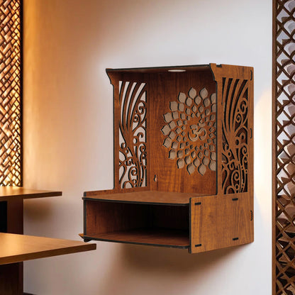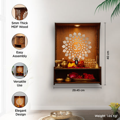 Pooja Mandir for Home | Wooden Om Temple for Home & Office | Lightweight | Easy to Assemble | Pooja Stand | Singhasan for God | Puja Mandir
