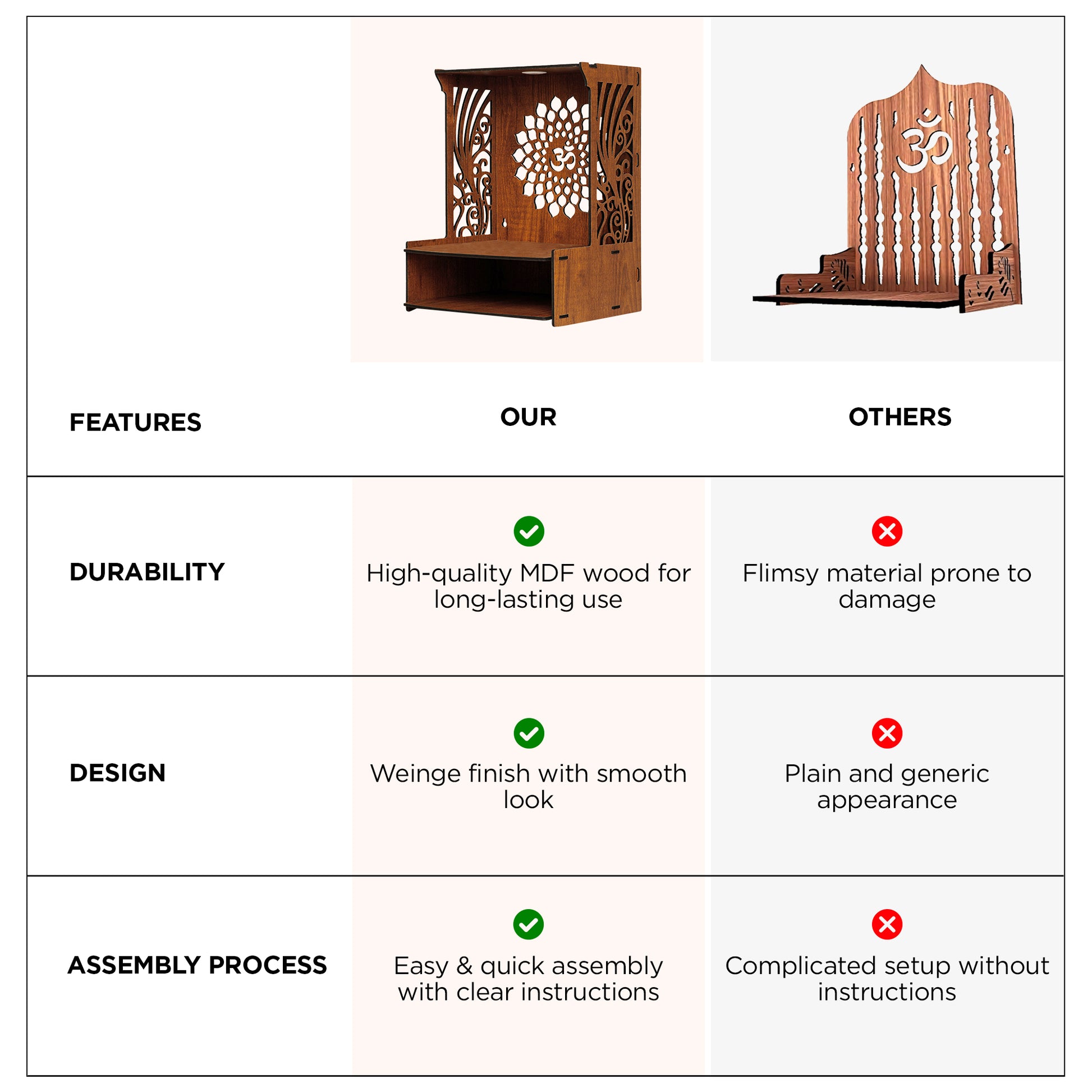 • High-Quality Craftsmanship: Made from sturdy 5mm MDF, this mandir is designed to last and withstand the test of time.