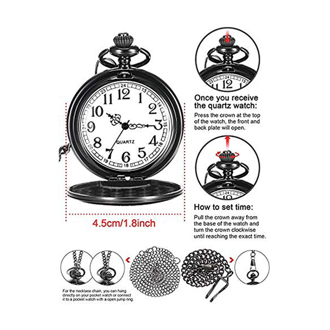 Black Pendant for Women Daughters Special Pocket Watch Pendant for Father's Little Princess Unique Memorable Gift for Daughter Stainless Steel Watch for Women and Girls.