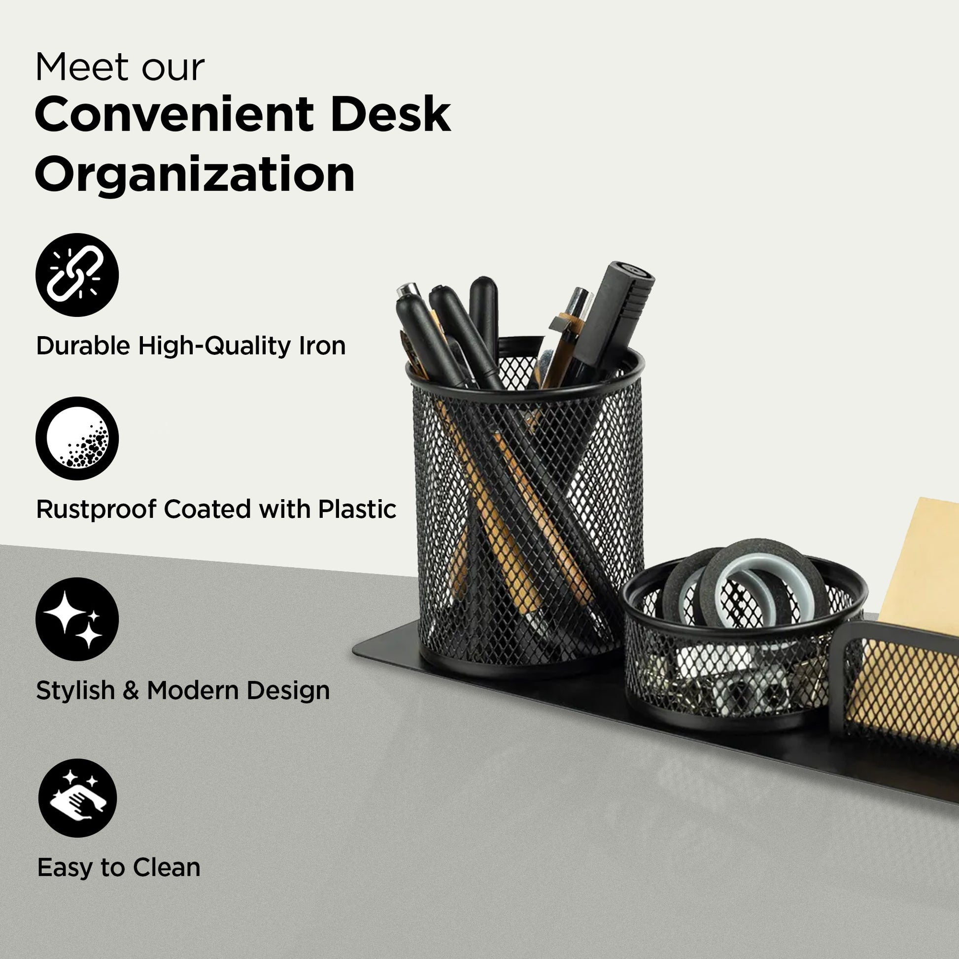 • SPACIOUS DESIGN: Includes dedicated holders for pens, clips, and sticky notes, ensuring everything has its place.