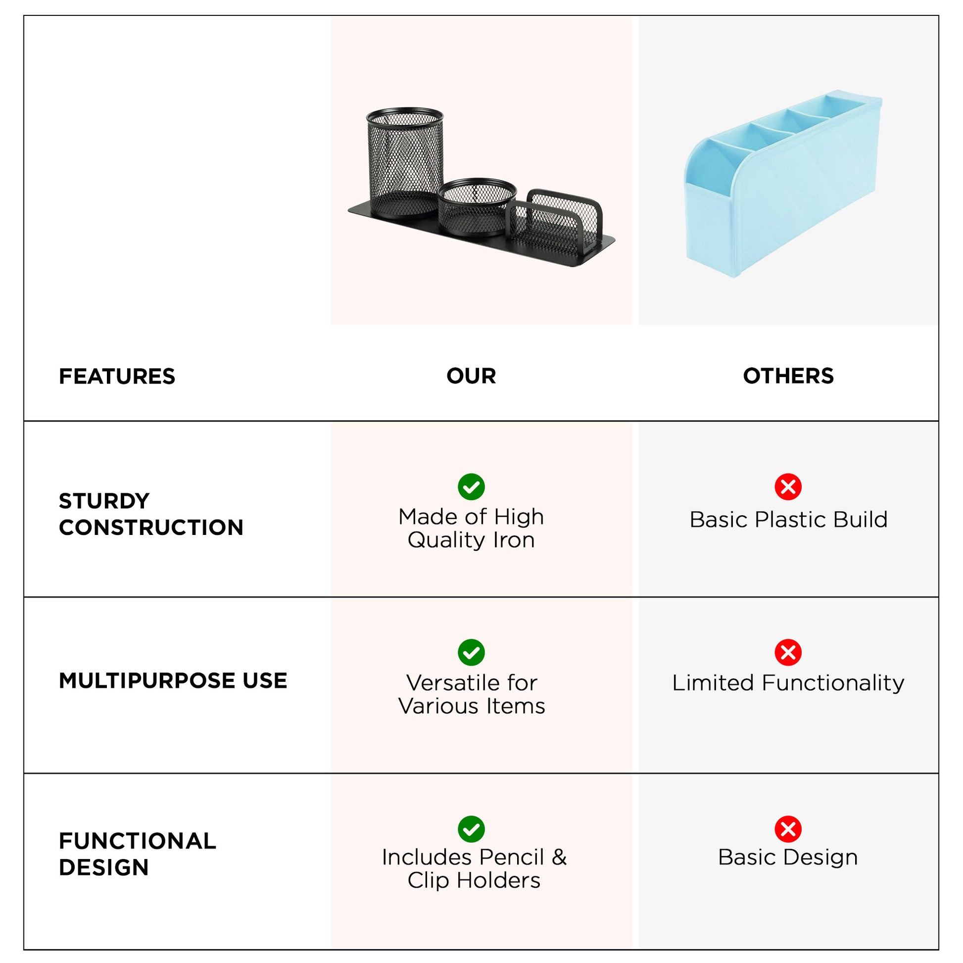 • DURABLE METAL CONSTRUCTION: Crafted from high-quality iron, this organizer is rust-free and built to last.