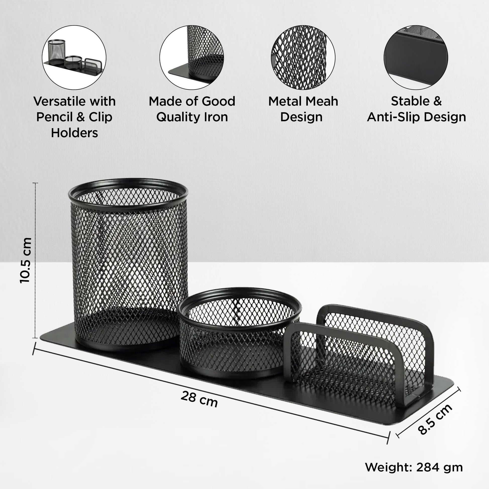 Introducing the Desk Supplies Organiser by UMAI, the perfect companion for tidying up your workspace! This stylish organizer provides ample storage for all your essential stationery. Made from durable iron and featuring a sleek black powder-coated finish, it measures compactly at 28.5cm x 9cm x 11.5cm. No more clutter; just grab your pens, pencils, sticky notes, and paper clips easily from this thoughtfully designed organizer!