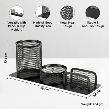 Pen Holder For Study Table | Business Card Holder Visiting Card Holder For Office, Reception Table | Space Saving Organizer | Office Desk Accessories Metal Mesh Design Storage Organizer