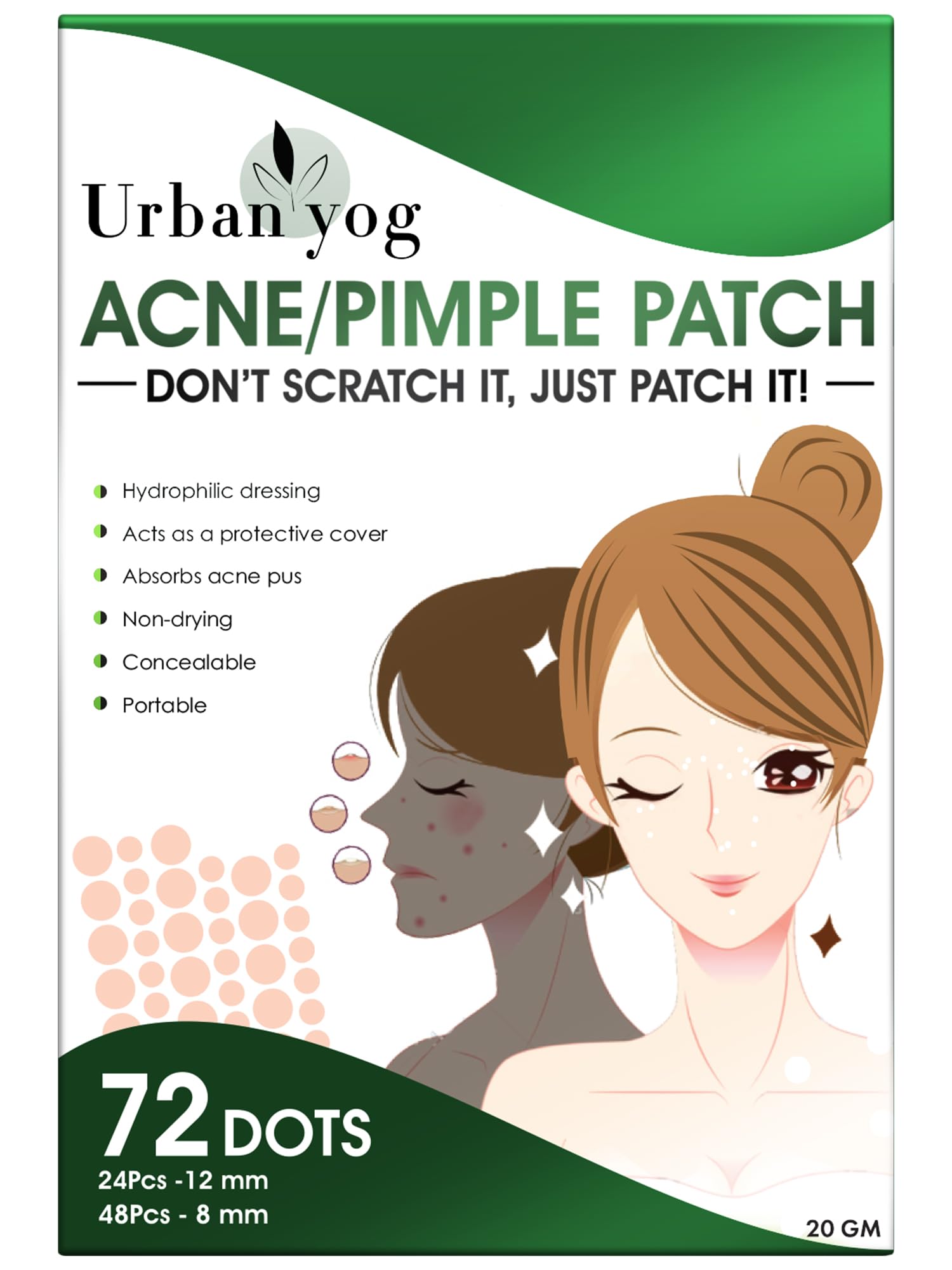 Urban Yog Acne Pimple Patch Kit: 72 Hydrocolloid Patches for Clear Skin | Unscented | Skin Treatment