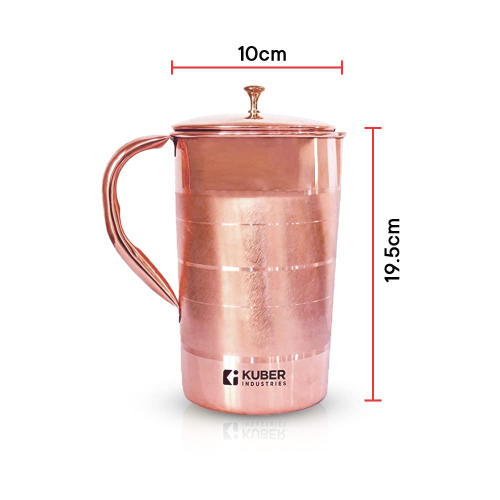 Urbane Home 1500ml Copper Jug with Lid | BPA Free, Non Toxic, Copper | Rustproof, Durable, Lightweight | with Added Health Benefits of Copper | Ergonomic Design, Easy to Clean | 1.5 L