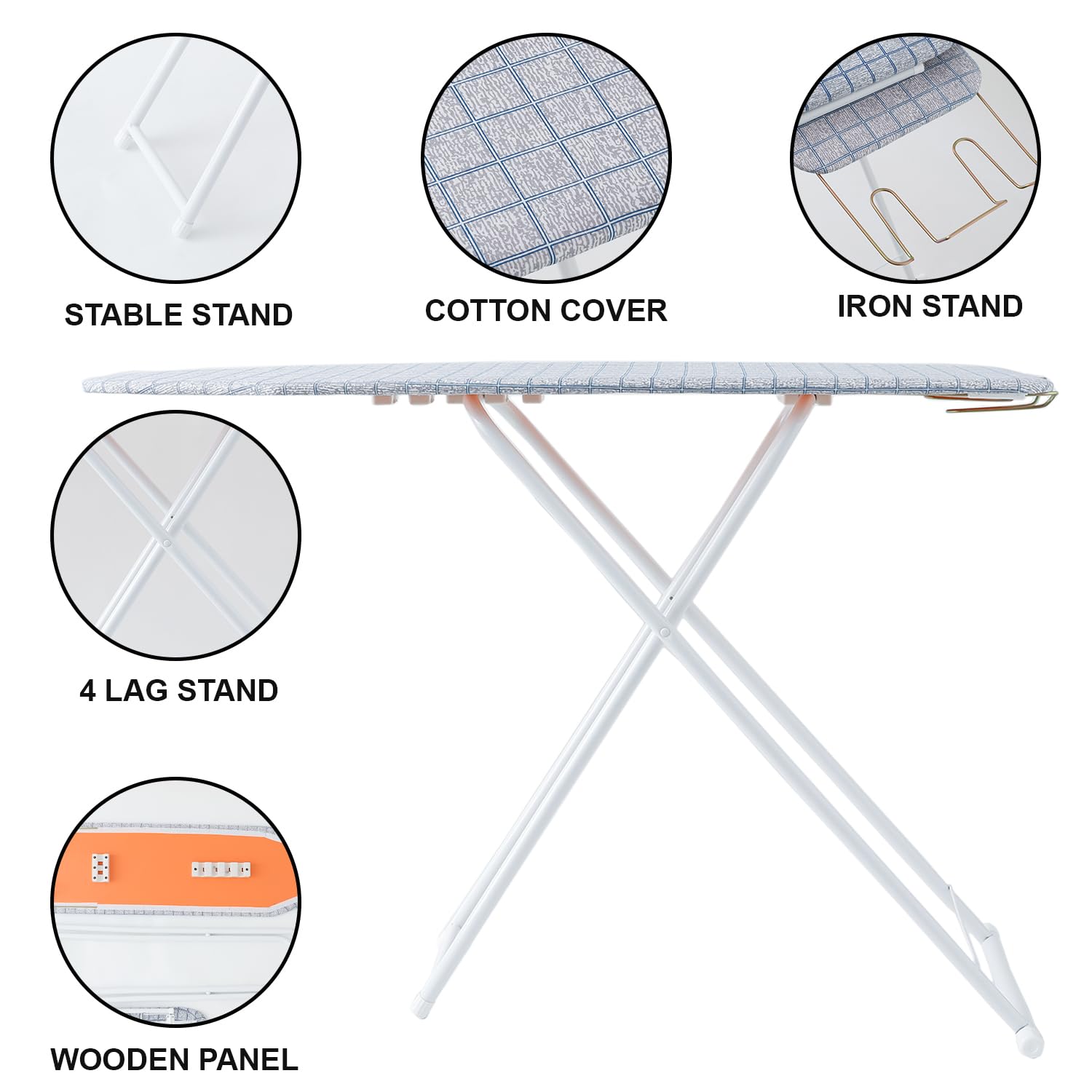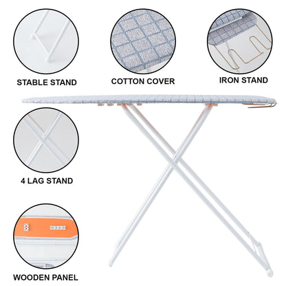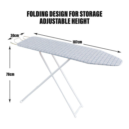 Ironing Board - 42 Inch Adjustable Height | Wooden Panel + Lacquer Iron Stand | Grey | Size: 107 x 30 cm