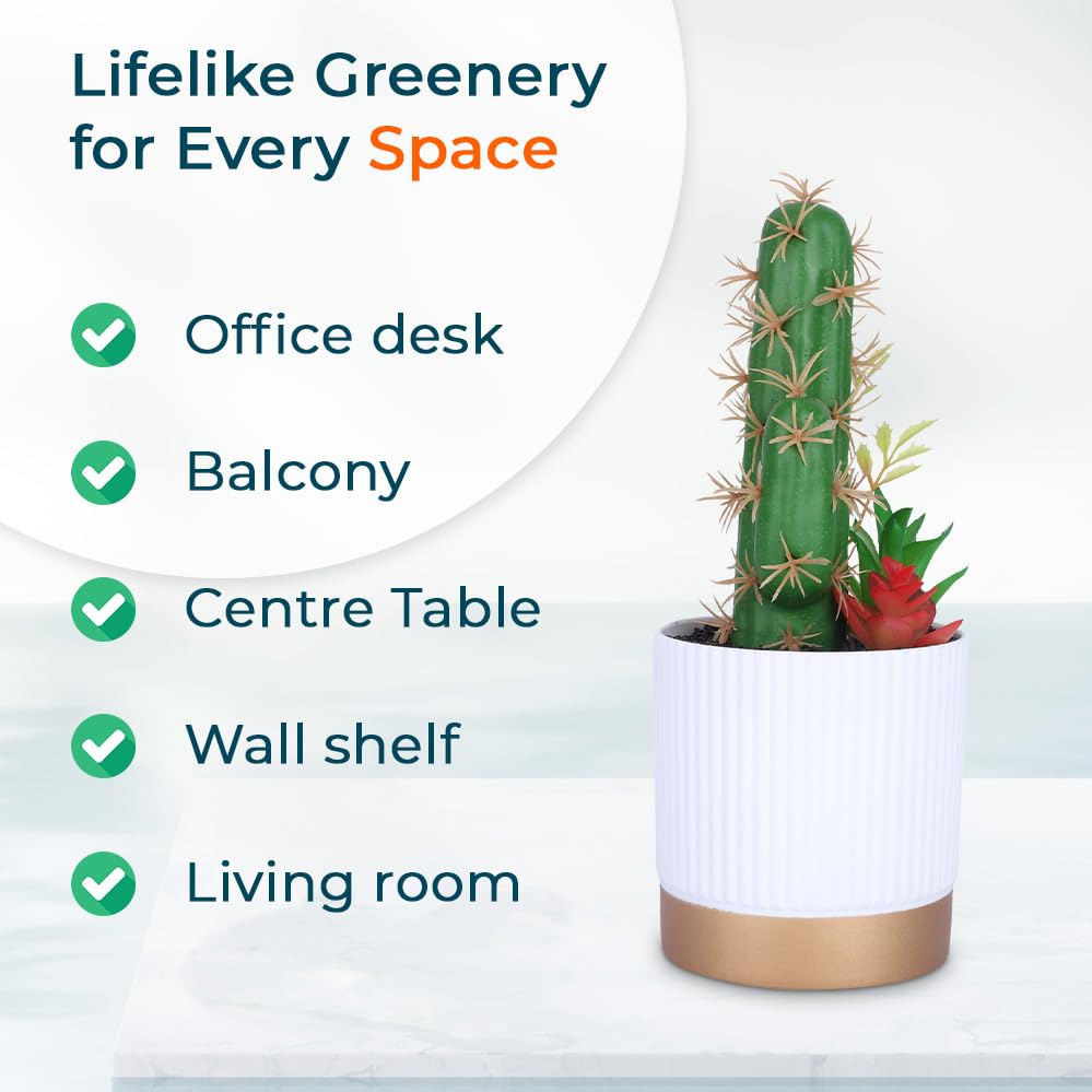 • Easy Placement: With the included pot, effortlessly introduce elegance to any surface. Whether on a shelf, tabletop, or floor, this artificial plant instantly transforms your environment into a haven of style.