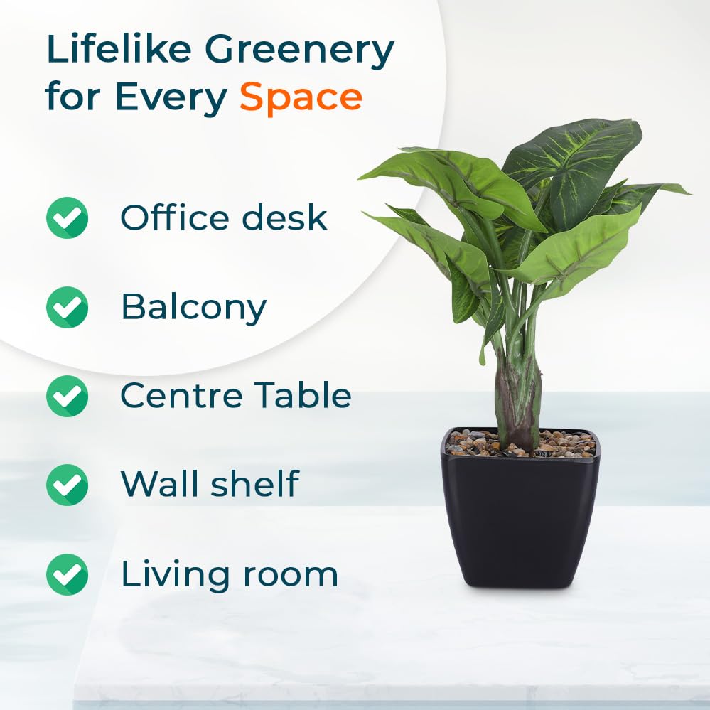 Kuber Industries Artificial Plants for Home D?cor|Natural Looking Indoor Fake Plants with Pot|Artificial Flowers for Decoration (Green)