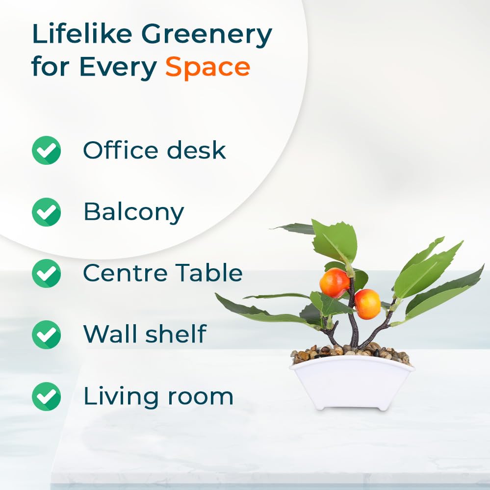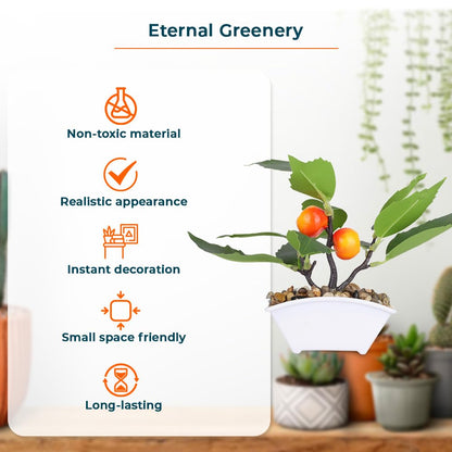 Artificial Plant with Pot - Natural Looking Decor | 6 x 6 x 16 CM | Orange | Perfect for Home & Office