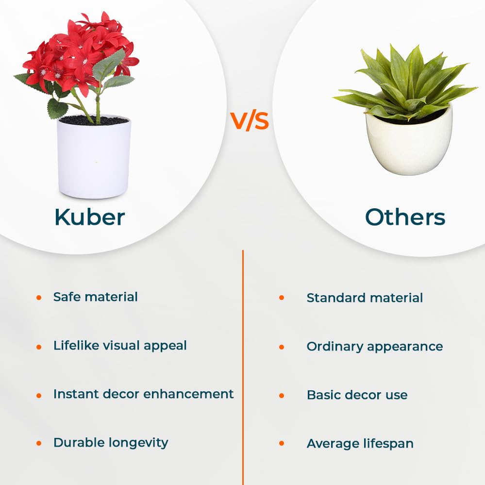 Kuber Industries Artificial Plants for Home D?cor|Natural Looking Indoor Fake Plants with Pot|Artificial Flowers for Decoration (Red)