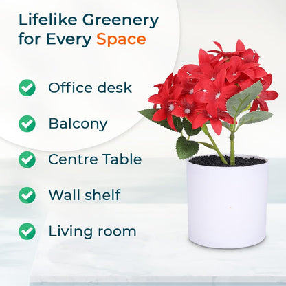 Homestic Artificial Plants for Home D?cor|Natural Looking Indoor Fake Plants with Pot|Artificial Flowers for Decoration (Red) PACKAGE CONTAINS: 1 Piece Artificial Plant With Pot|MATERIAL: Plastic |PRODUCT DIMENSION: Total height:18cm; Flower diameter: 5cm; Pot height: 7.5cm; Pot diameter: 9cm LIFELIKE AESTHETICS: Immerse yourself in the lush and vibrant appearance of this artificial plant. With meticulously crafted foliage and vivid colors, it exudes an authentic, natural charm that adds an inviting atmosphere to any room. LOW-MAINTENANCE ELEGANCE: Say goodbye to the challenges of caring for live plants. Our artificial plant stays perpetually green and fresh without the need for watering, sunlight, or pruning. This makes it an ideal choice for those with busy lifestyles or spaces where natural light is limited. DURABLE CONSTRUCTION: Crafted with precision and using high-quality materials, our artificial plant is designed to withstand the test of time. The pot is robust and stable, ensuring your decorative piece remains intact and continues to radiate its beauty for years to come. EASY PLACEMENT: With a convenient pot included, you can effortlessly introduce a touch of elegance to your space. Simply place the Artificial Plant with Pot on any surface, whether it's a shelf, tabletop, or even the floor, and watch as it instantly transforms your surroundings into a haven of natural beauty and style.