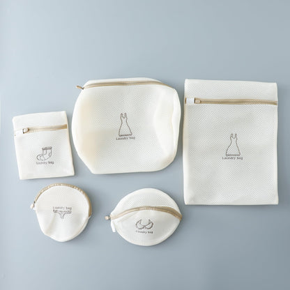 Pack of 5: Reusable Mesh Laundry Bags for Blouse, Bra & Jeans | 30x1x40 cm | White | Durable Polyester