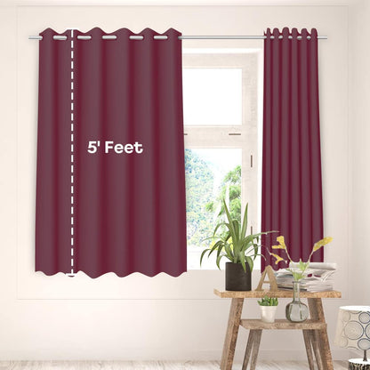 Urbane Home Polyester Decorative 5 Feet Window Curtain Darkening Blackout | Drapes Curtain With 8 Eyelet For Home & Office (Wine)