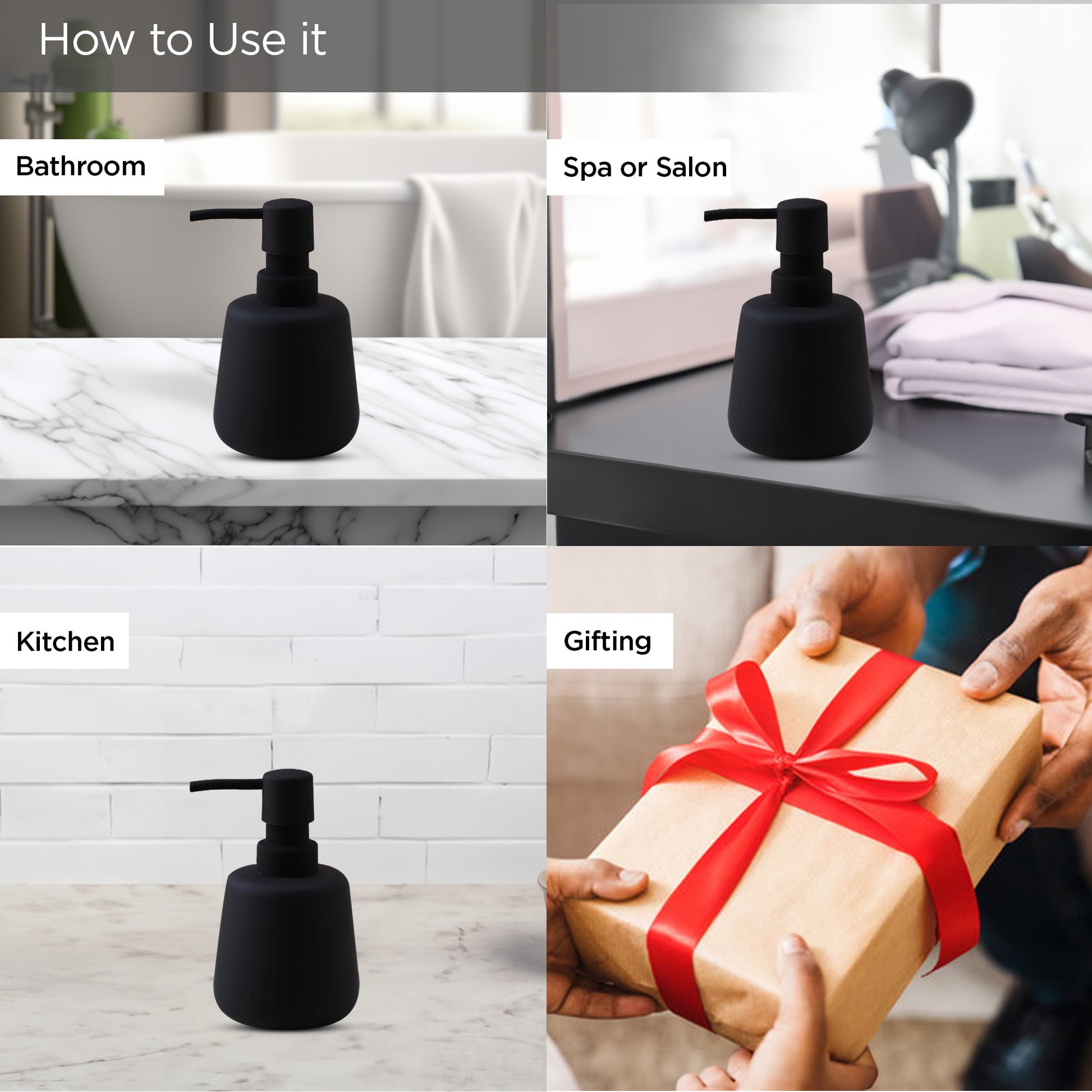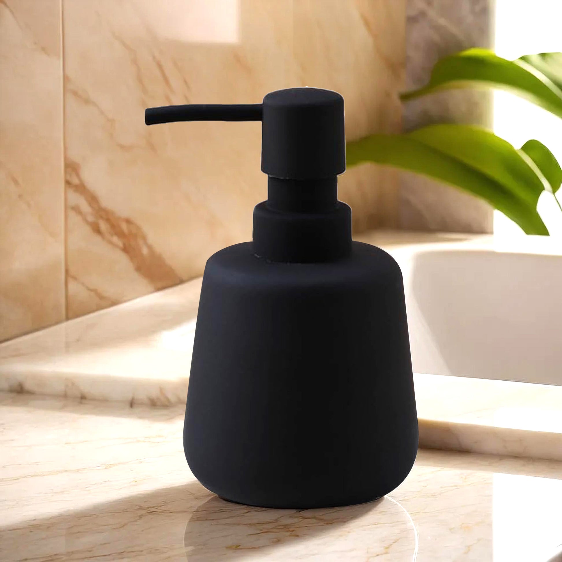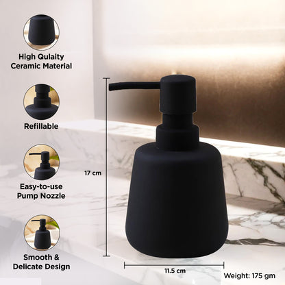 USHA SHRIRAM 260ml Soap Dispenser Bottle | Ceramic Soap & Lotion Dispenser Set | Kitchen Dish Soap Pump Dispenser Set | Hand Shower Washing Soap Dispenser (Design2 - Black, Pack of 1)