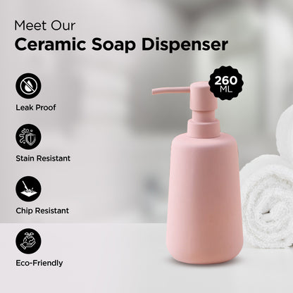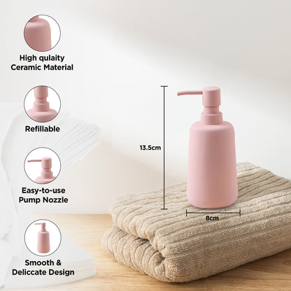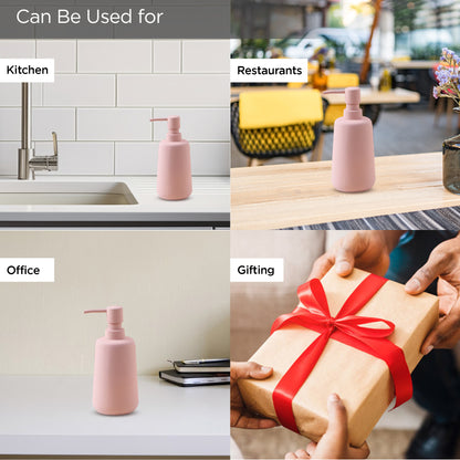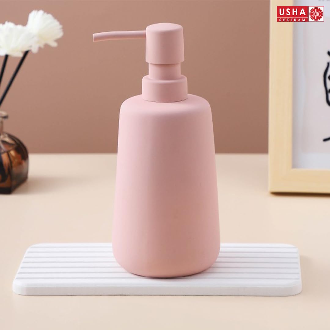 USHA SHRIRAM 260ml Soap Dispenser Bottle | Ceramic Soap & Lotion Dispenser Set | Kitchen Dish Soap Pump Dispenser Set | Hand Shower Washing Soap Dispenser (Design2 - Pink, Pack of 1)