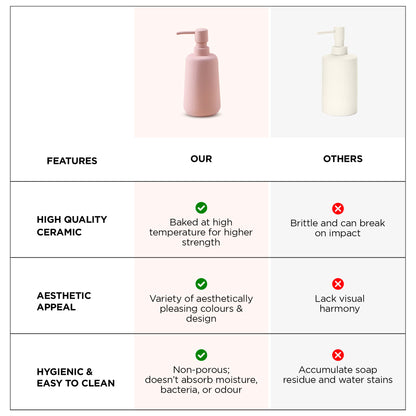 Introducing the USHA SHRIRAM 260ml Soap Dispenser Bottle, a perfect blend of style and functionality. This ceramic soap and lotion dispenser set is designed to enhance your kitchen and bathroom experience.