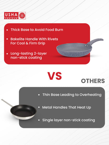 Invest in a cookware set that combines functionality with style. The USHA SHRIRAM Non-Stick Cookware Set is not only practical but also designed to enhance your cooking experience. With its scratch-resistant surface and user-friendly features, cooking becomes a joy rather than a chore.